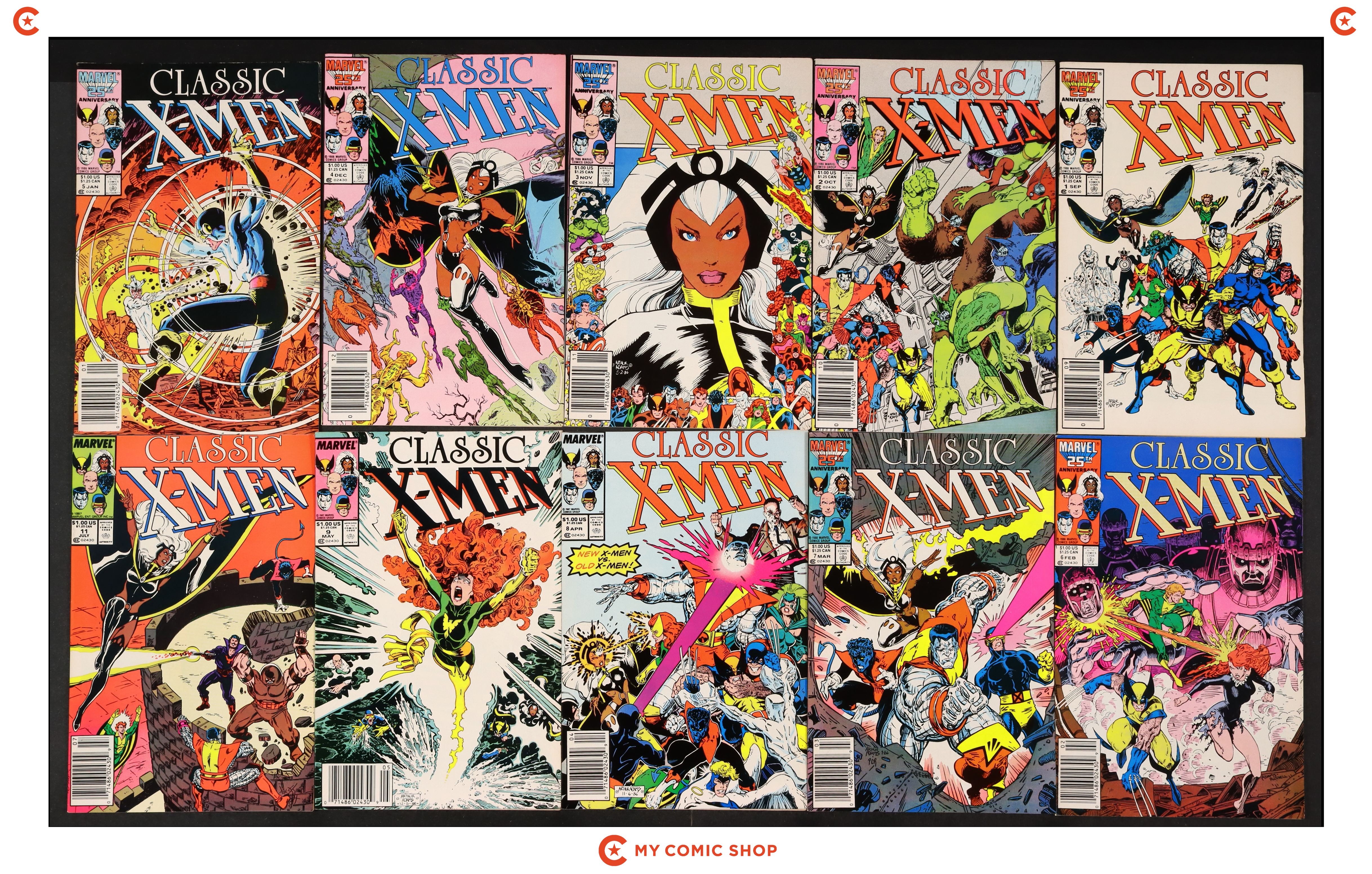 Issues 1N, 2-4, 5N, 6-9, and 11 of X-Men Classic (1986-1995 Marvel) Classic X-Men. Most will grade in the VF to FN range.