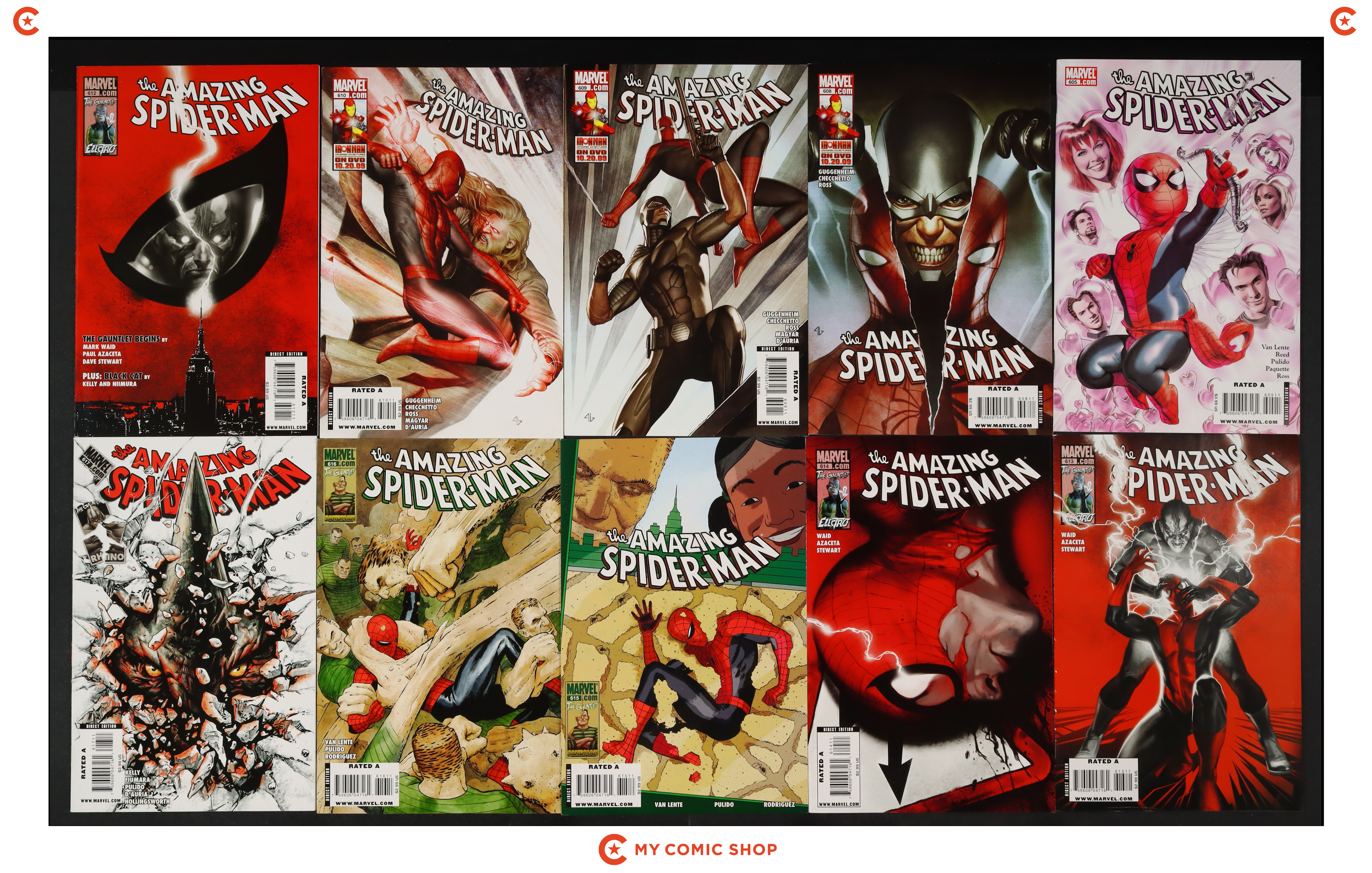 Issues 605, 608A, 609, 610, 612A, 613A, 614, 615A, 616, and 617A of Amazing Spider-Man (1998 2nd Series). Most will grade in the VF to FN range with #614 grading VG.