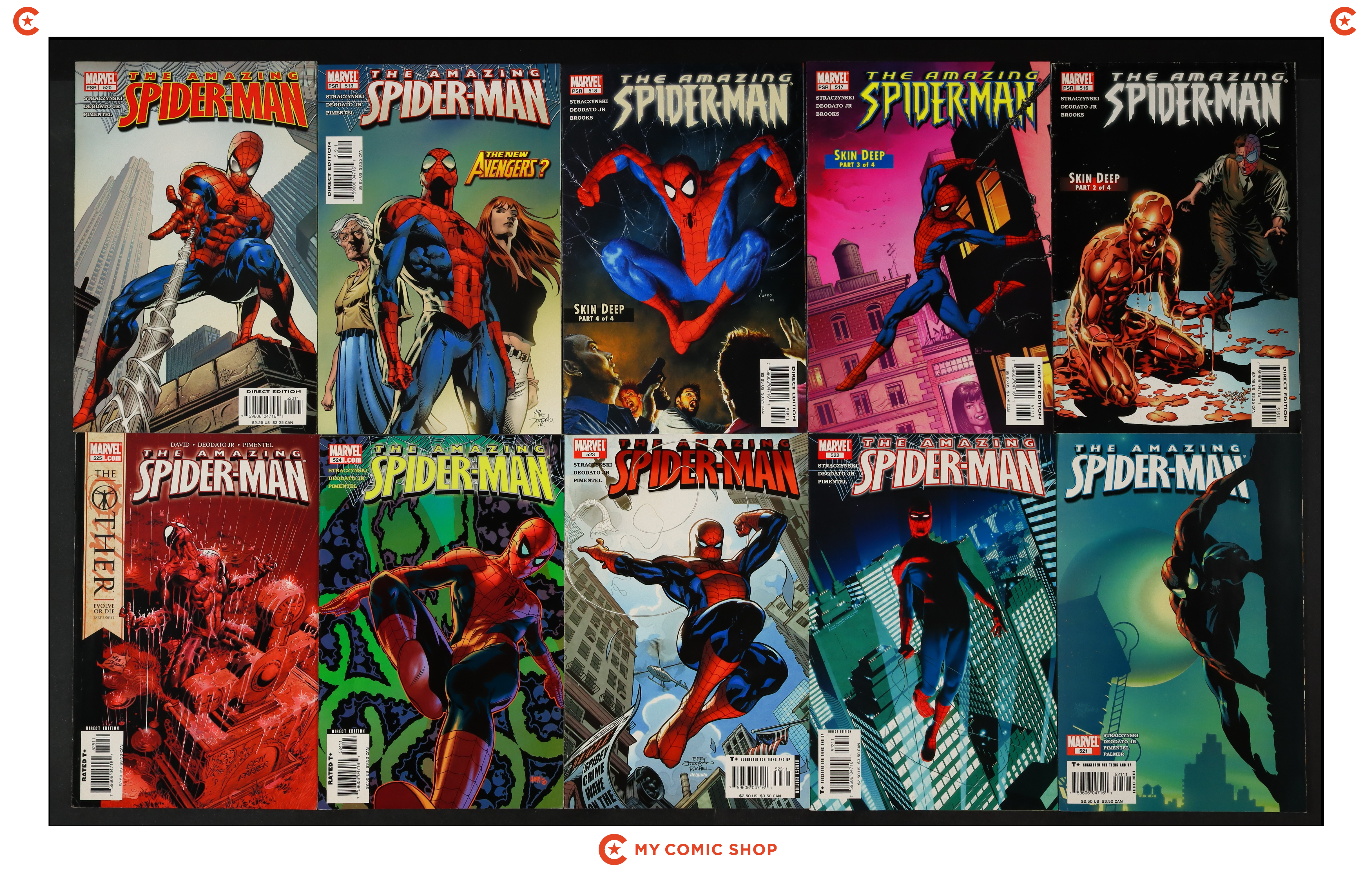 Issues 516-525A of Amazing Spider-Man (1998 2nd Series). Most will grade in the FN to VF range with #516, #524 grading VG.