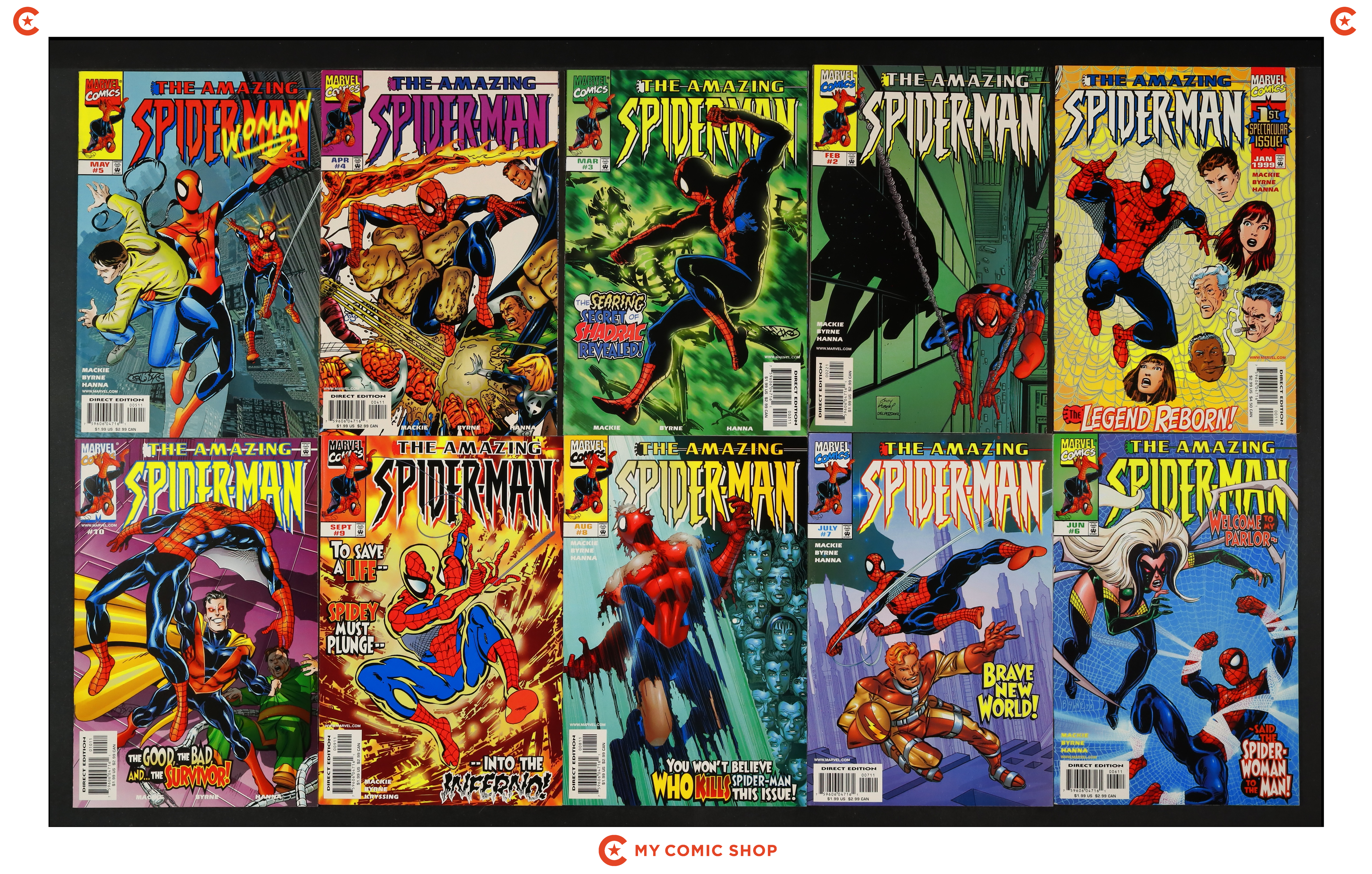 Issues 1A.D, 2B, 3, 4, 5D, 6, 7, 8, 9, 10 of Amazing Spider-Man (1998 2nd Series). Most will grade in the FN to VF/NM range.