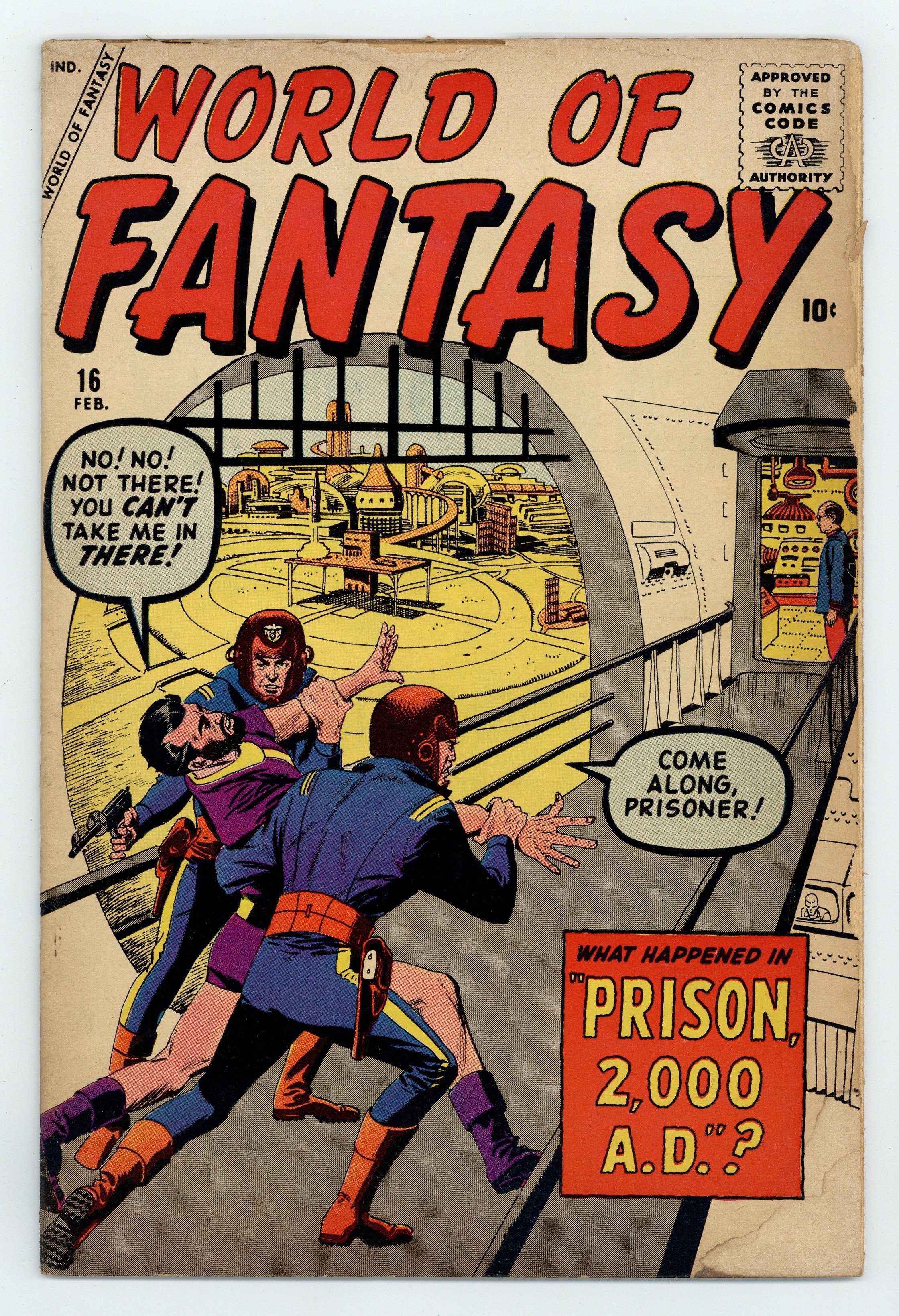 Starts Apr 27 Nightmare Planet, art by Joe Sinnott; Earth is terrified by the approach of a giant planet, but a military expedition finds that time moves more slowly on this planet, so they will not notice Earth. Bird Talk text story. Arise, Oh Geni..., art by Steve Ditko; A man with hay fever releases a hostile genie with plans of conquest from a lamp, but the genie contracts hay fever from his liberator. Worlds Within Worlds!; A scientist is convinced that there are microscopic worlds inside microbes. Beware the Future!, art by Al Williamson. Prison 2000 A.D., pencils by Jack Kirby, inks by Christopher Rule. 36 pgs. $0.10. Cover price $0.10.