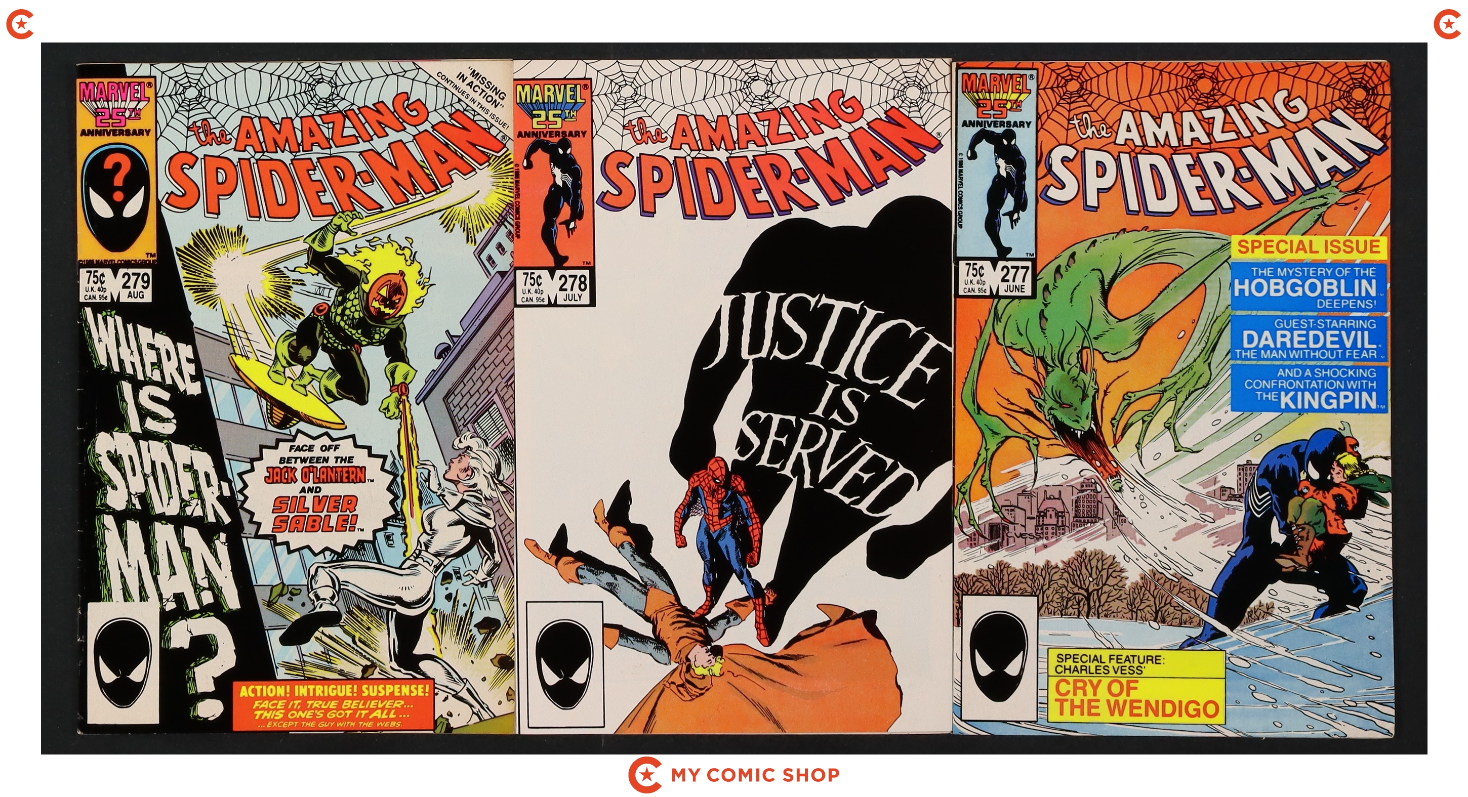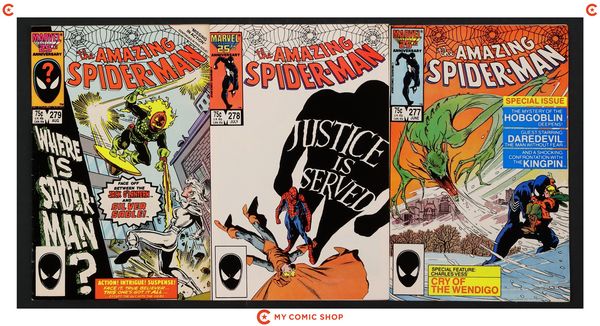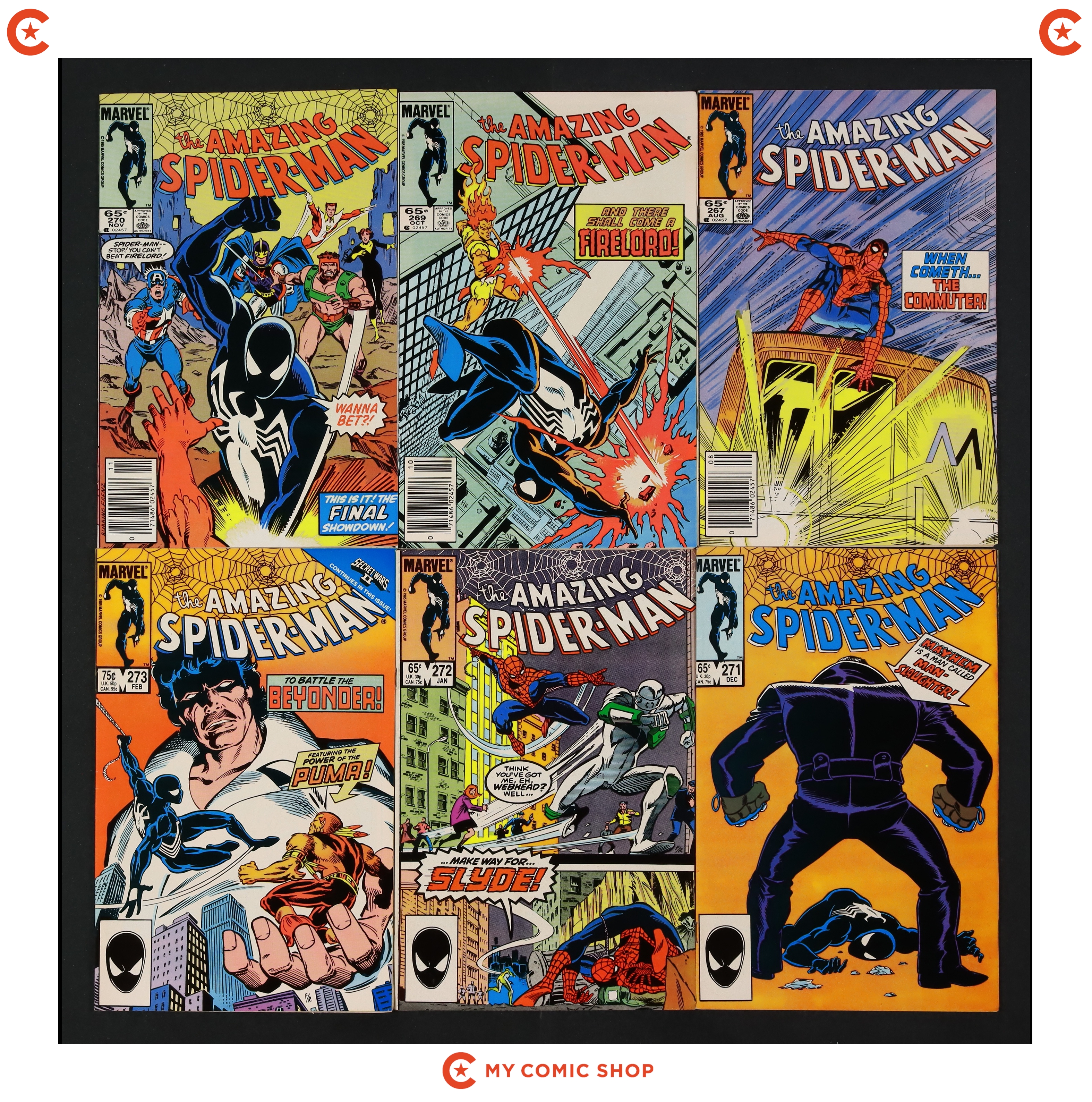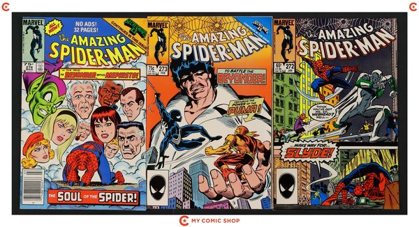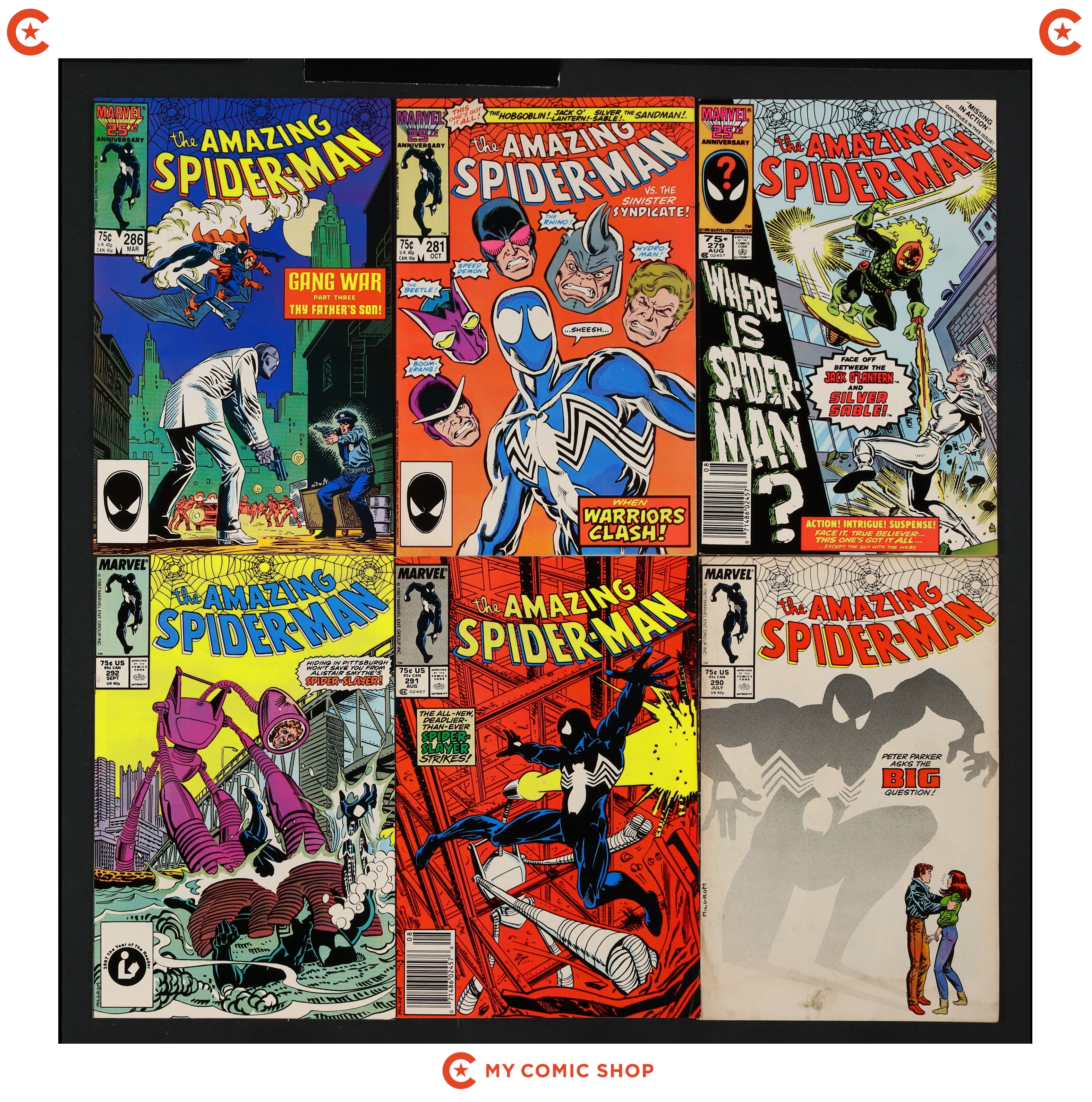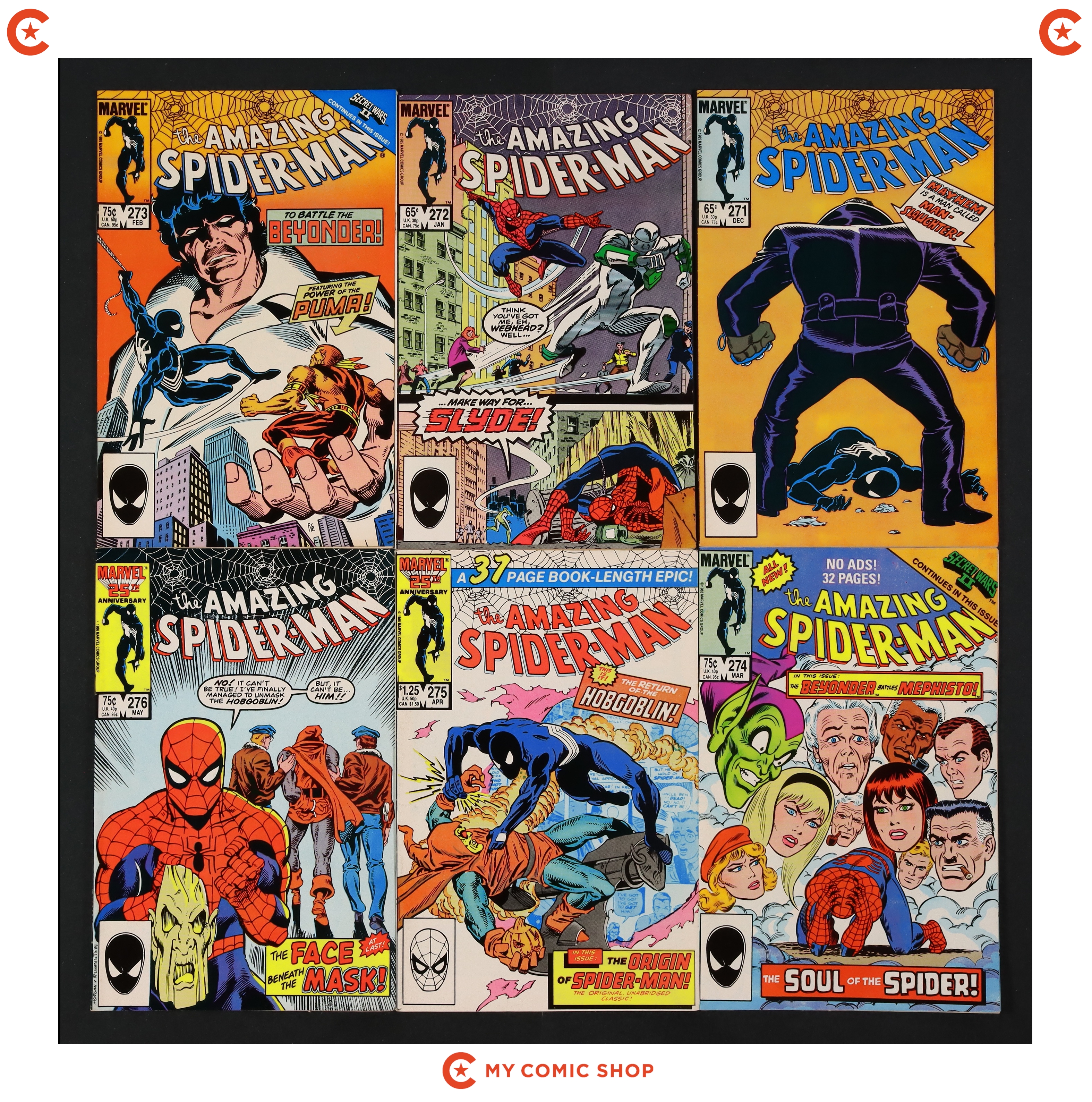 Issues 270D-273D, 274-276, 277D, and 278N of Amazing Spider-Man (1963 1st Series). Most will grade in the FN to VG range.