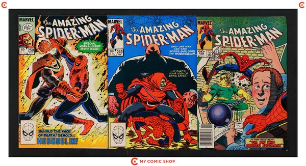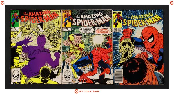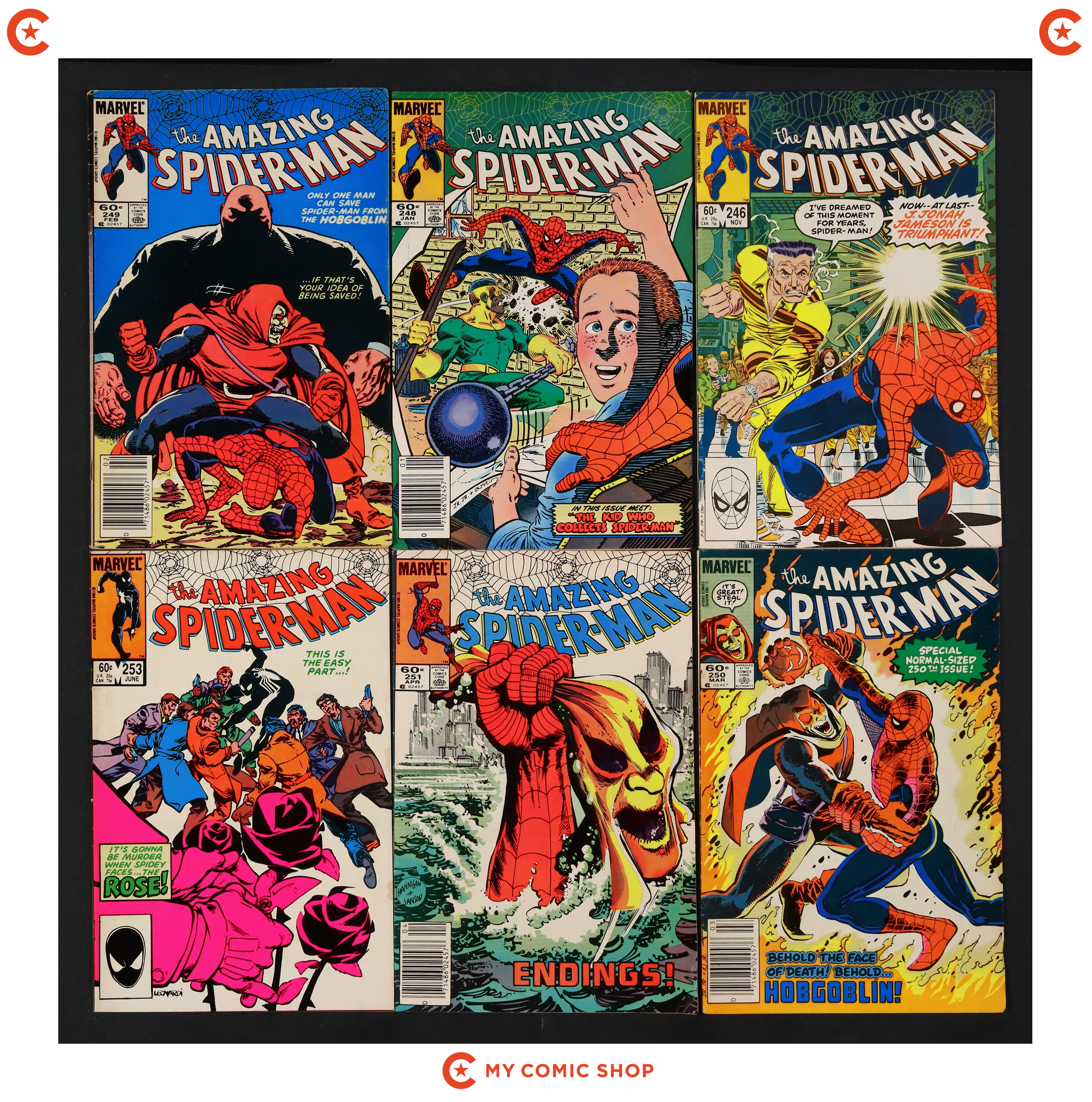 Issues 242, 243N-245N, 246, 247, 248N, 249D, 250D of Amazing Spider-Man (1963 1st Series). Most will grade in the VG- to FN+ range.