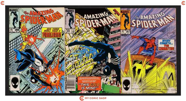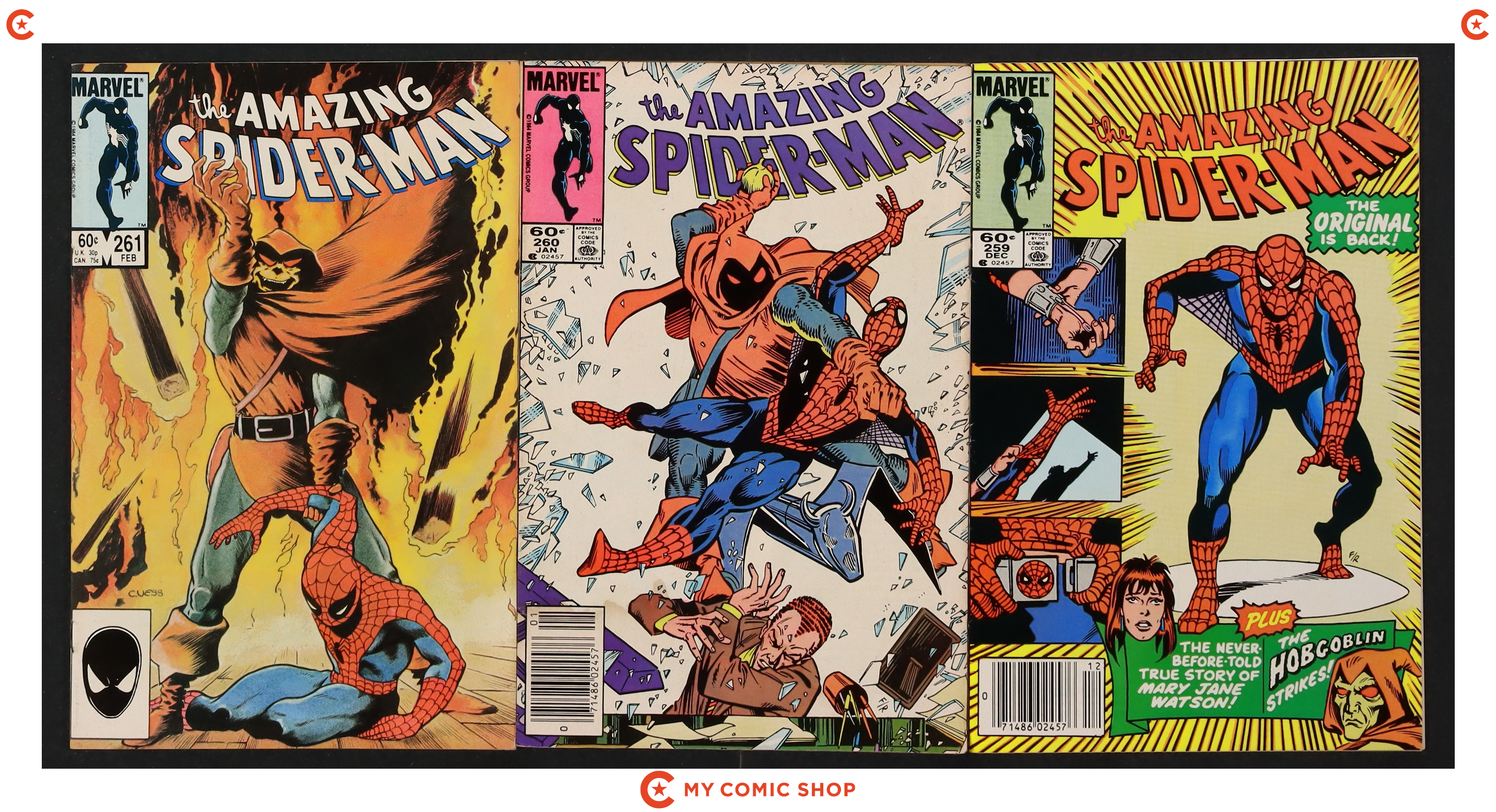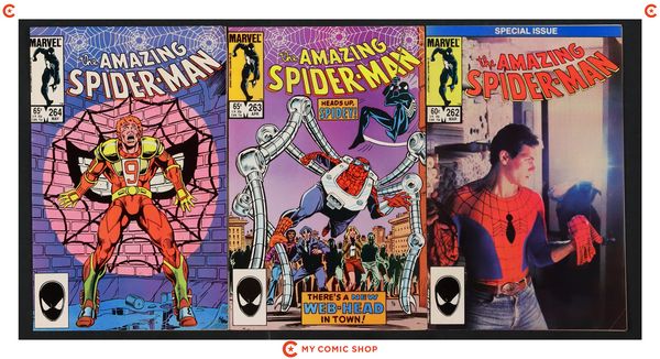 Issues 258N, 262N, 263, 264, 265B, 266D, 267D, 268, 269D of Amazing Spider-Man (1963 1st Series). Most will grade in the FN- to VF- range.