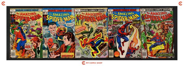 Issues 166-170 of Amazing Spider-Man (1963 1st Series). Most will grade in the FN to FN/VF range.