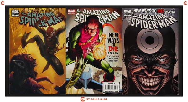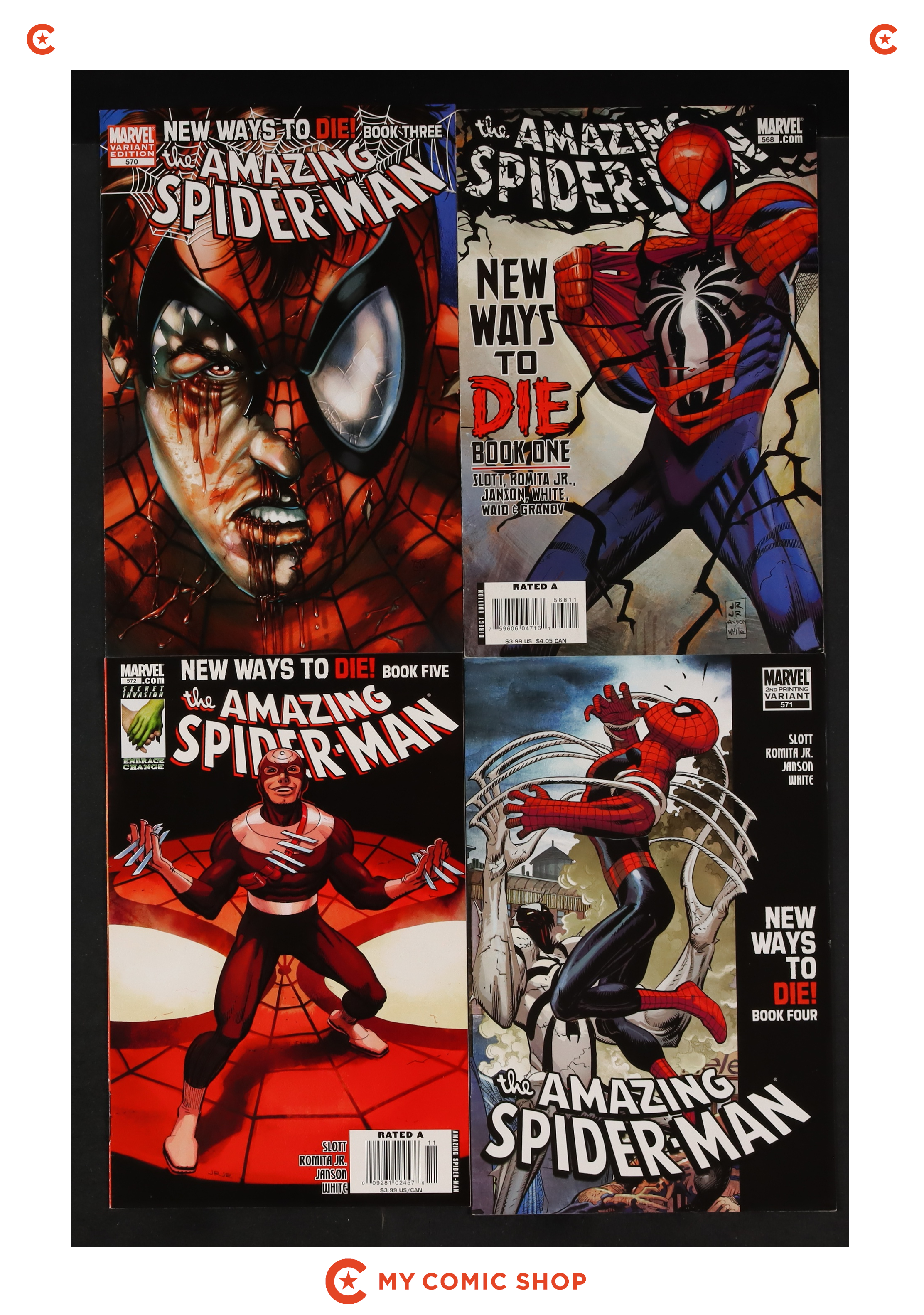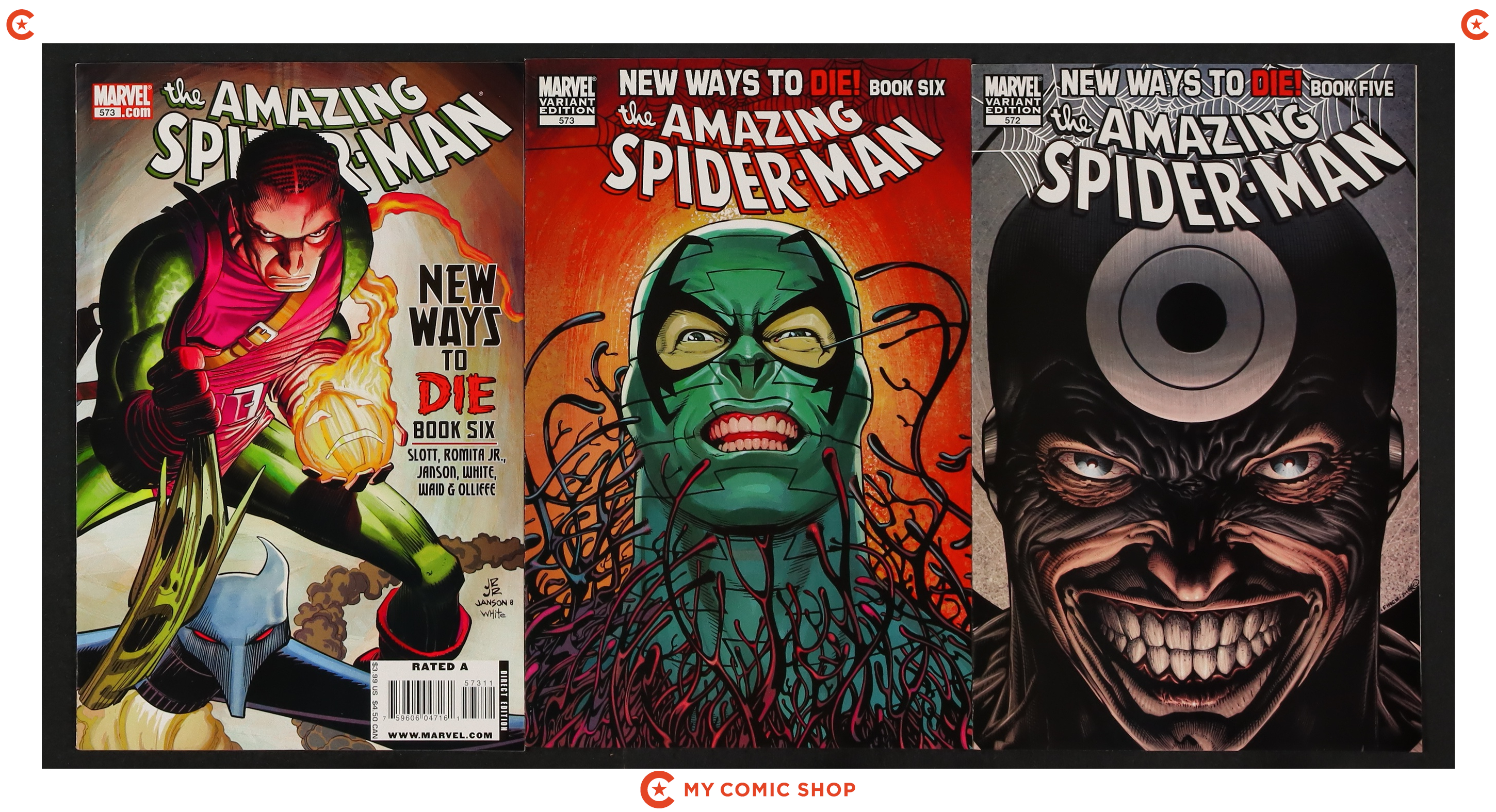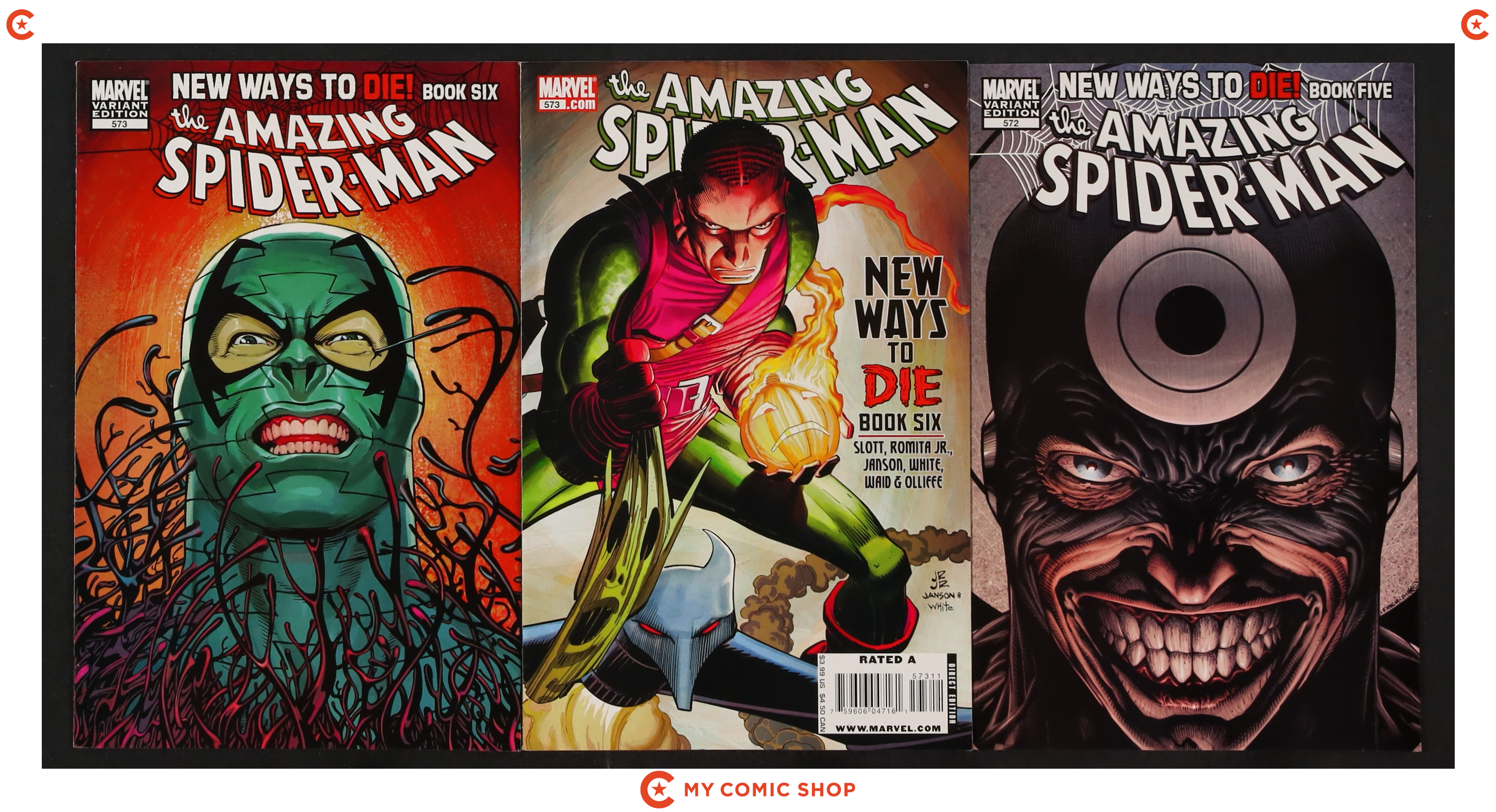 Issues 568A, 570B, 571C, 572A, 572B, 573A, and 573B of Amazing Spider-Man (1998 2nd Series). Most will grade in the FN range with a couple grading closer to VF.