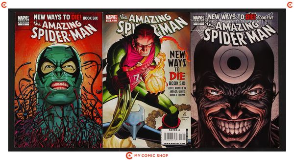 Starts Dec 15 Stan Lee Collectibles Exclusive. B&W cover. Secret Wars: Warzones - Written by Dan Slott. Art and Cover by J. Scott Campbell. THE LAST SPIDER-MAN STORY Not even The Amazing Spider-Man is safe from Secret Wars! In this new Marvel Universe, Peter Parker, Mary Jane Watson and their daughter have to scrape by to make ends meet, but they have each other… Face front, True Believers. This is the one you've been asking for. 28 pages, full color. Rated T. A set of the colored and B&W Stan Lee variant was sold exclusively at 2015 SDCC.