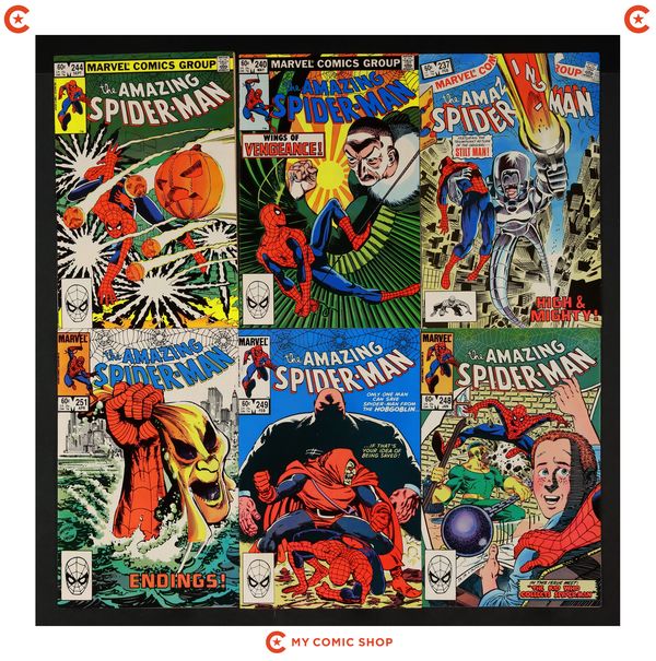 Issues 246, 248N-251N, 253D, 254D, 255N, 256D of Amazing Spider-Man (1963 1st Series). Most will grade in the VG/FN to VF range.