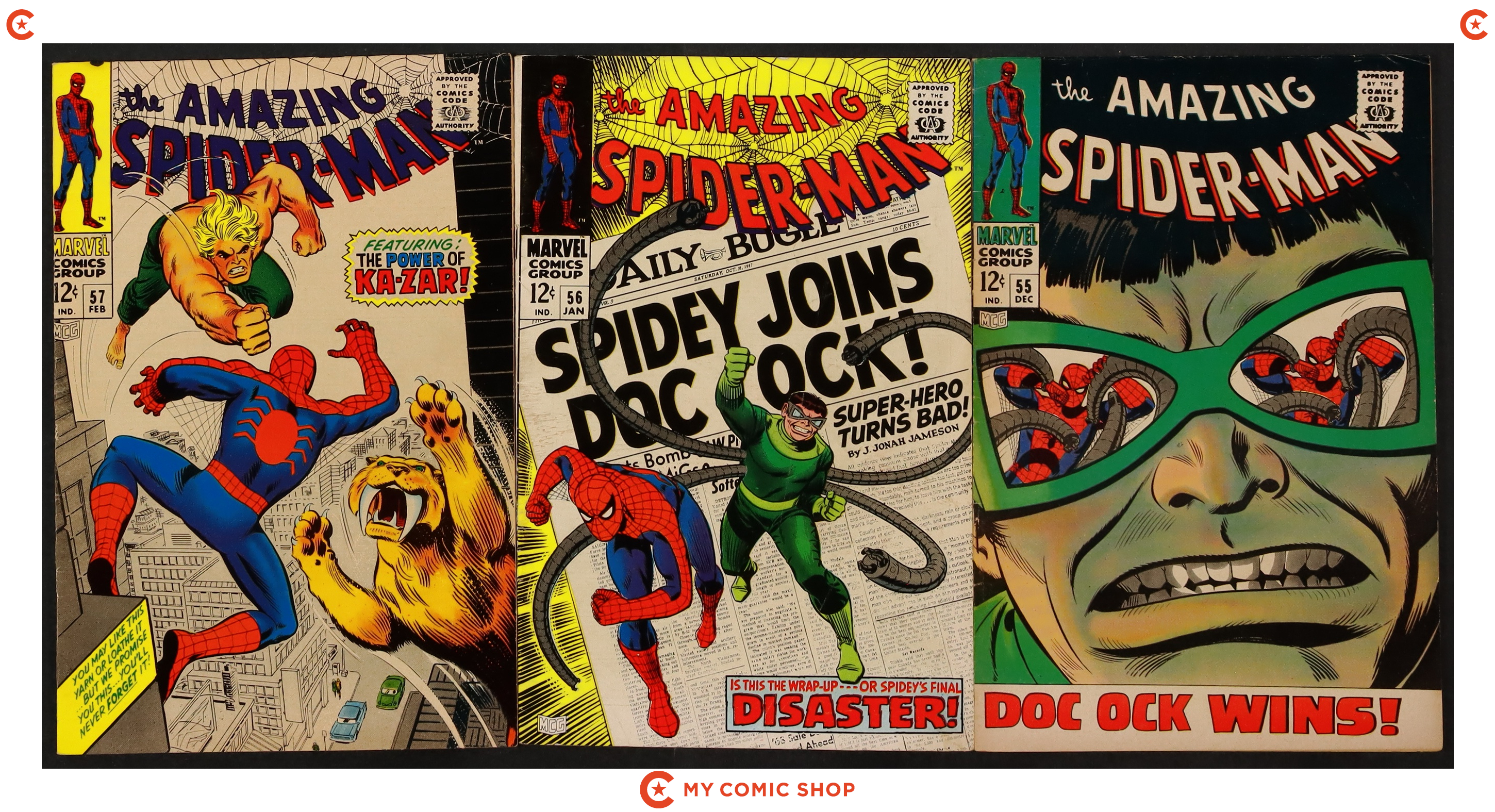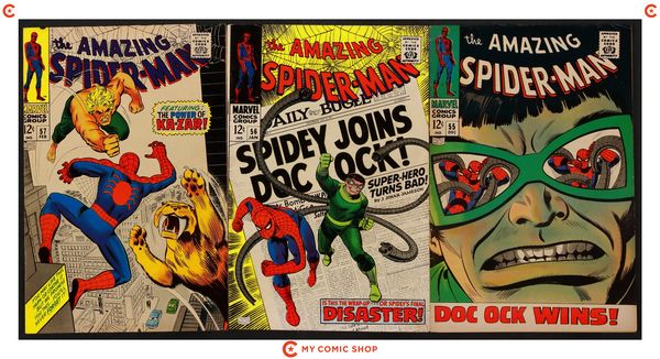Issues 55, 56, 57 of Amazing Spider-Man (1963 1st Series). Most will grade in the VG to VG/FN range, with #56 grading at GD-.