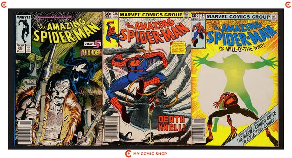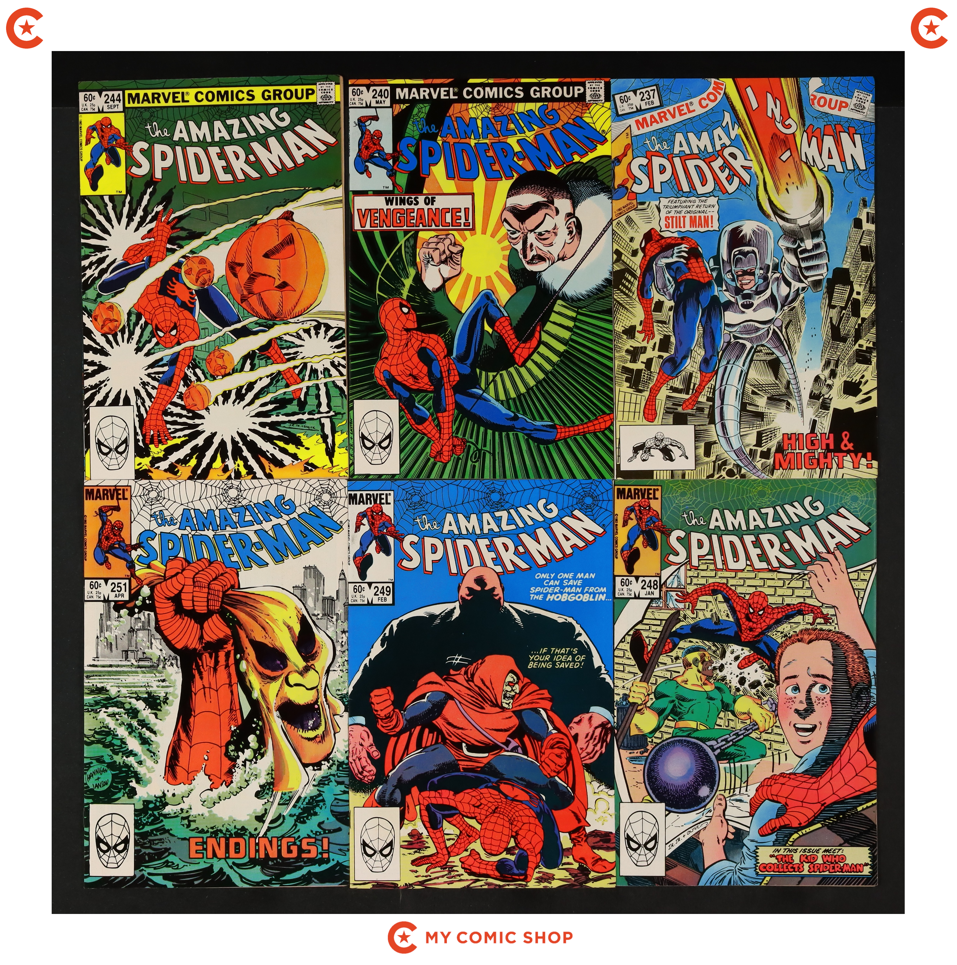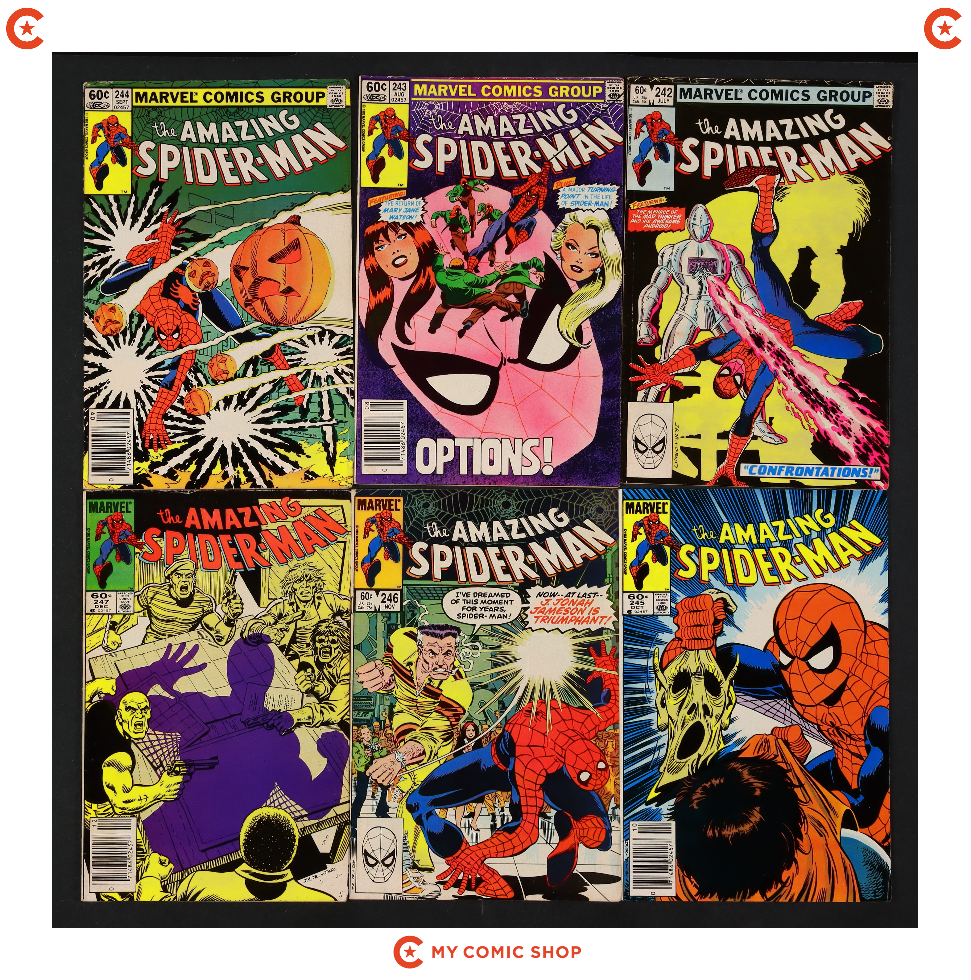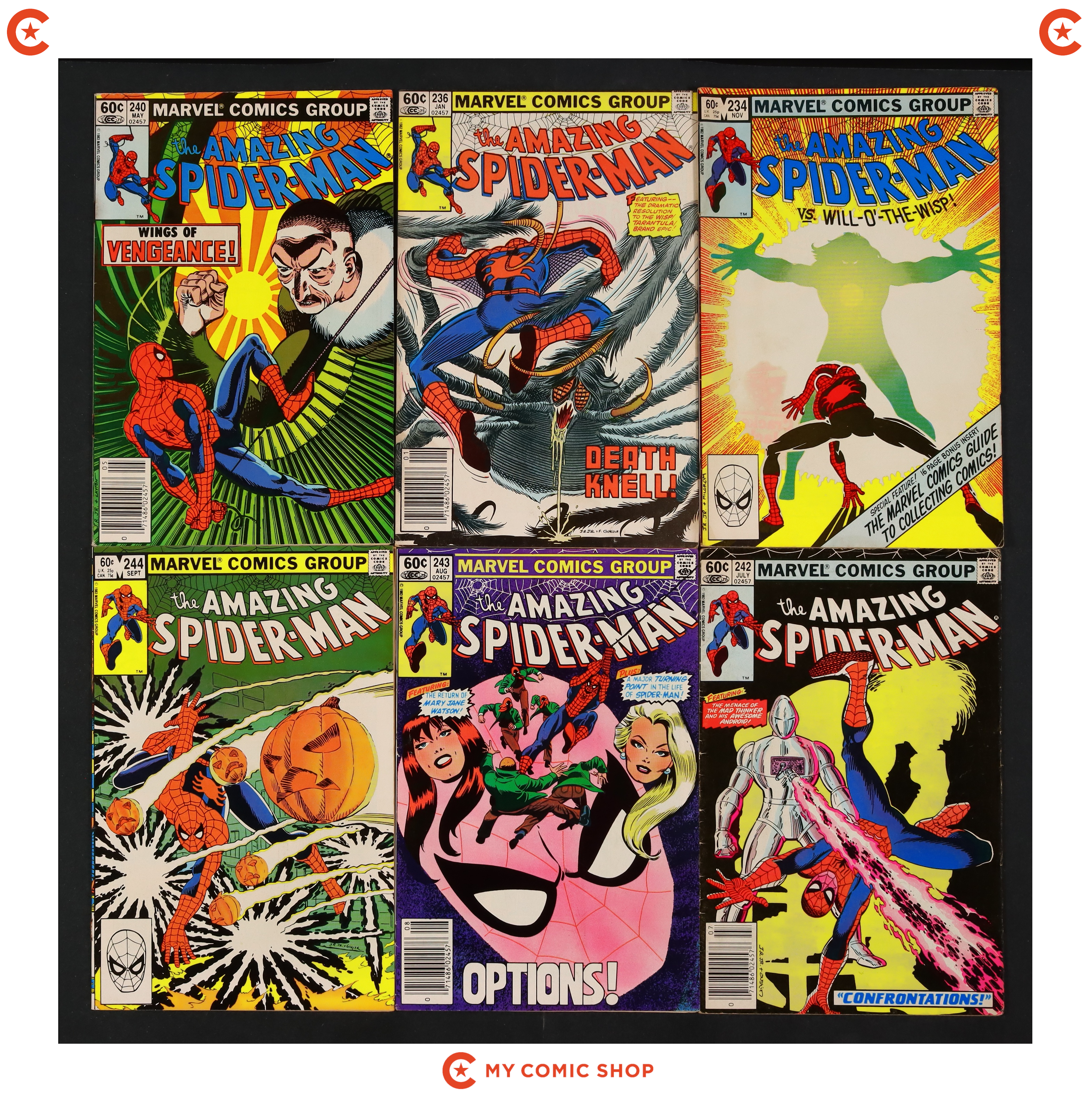 Issues 234D, 236, 240N, 242, 243N, 244D, 245N, 246, 247 of Amazing Spider-Man (1963 1st Series). Most will grade in the GD/VG to FN range.