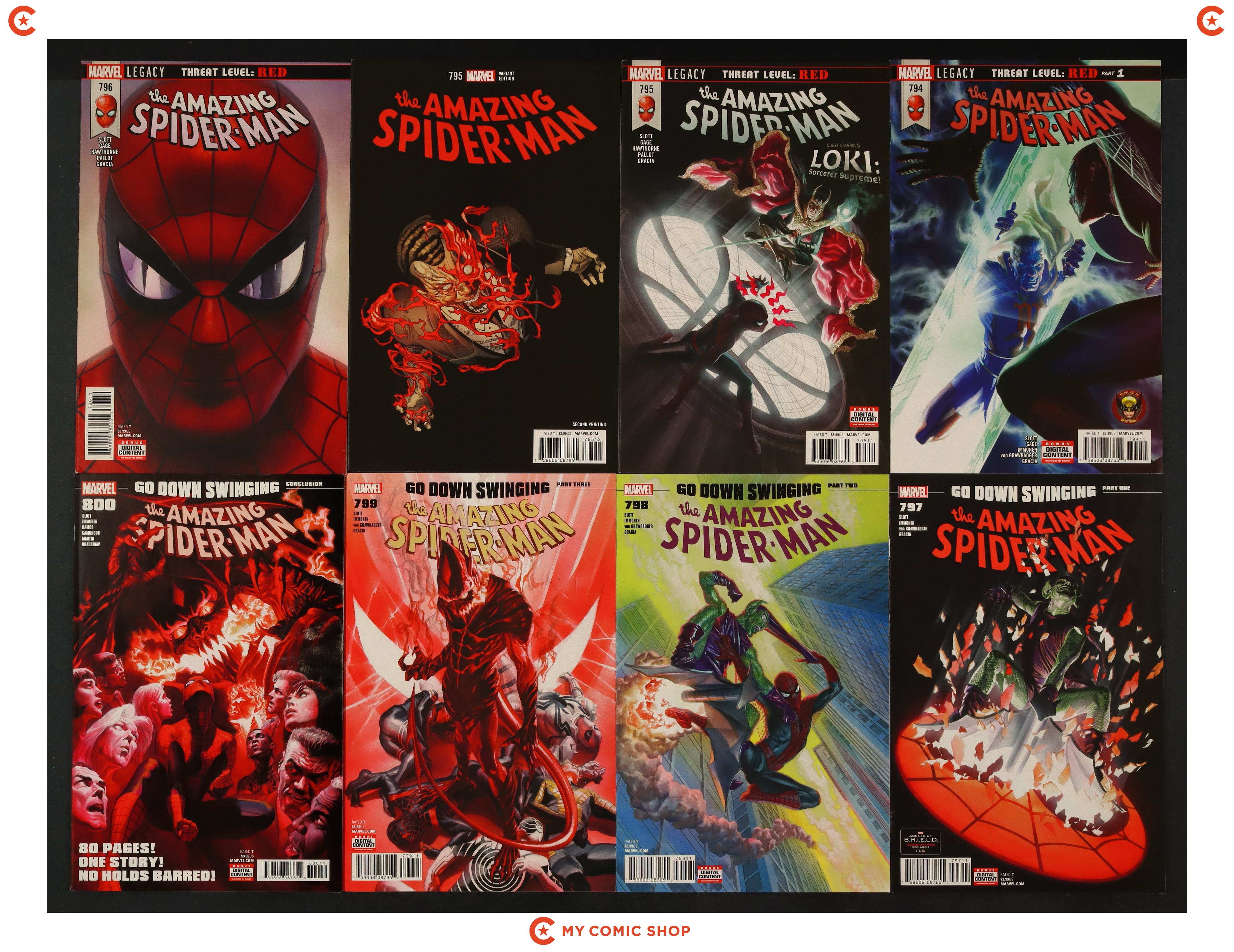 Issues 794A, 795A, 795C, and 796A-800A of Amazing Spider-Man (2017 5th Series). Most will grade in the NM to VF range with #800 grading FN.