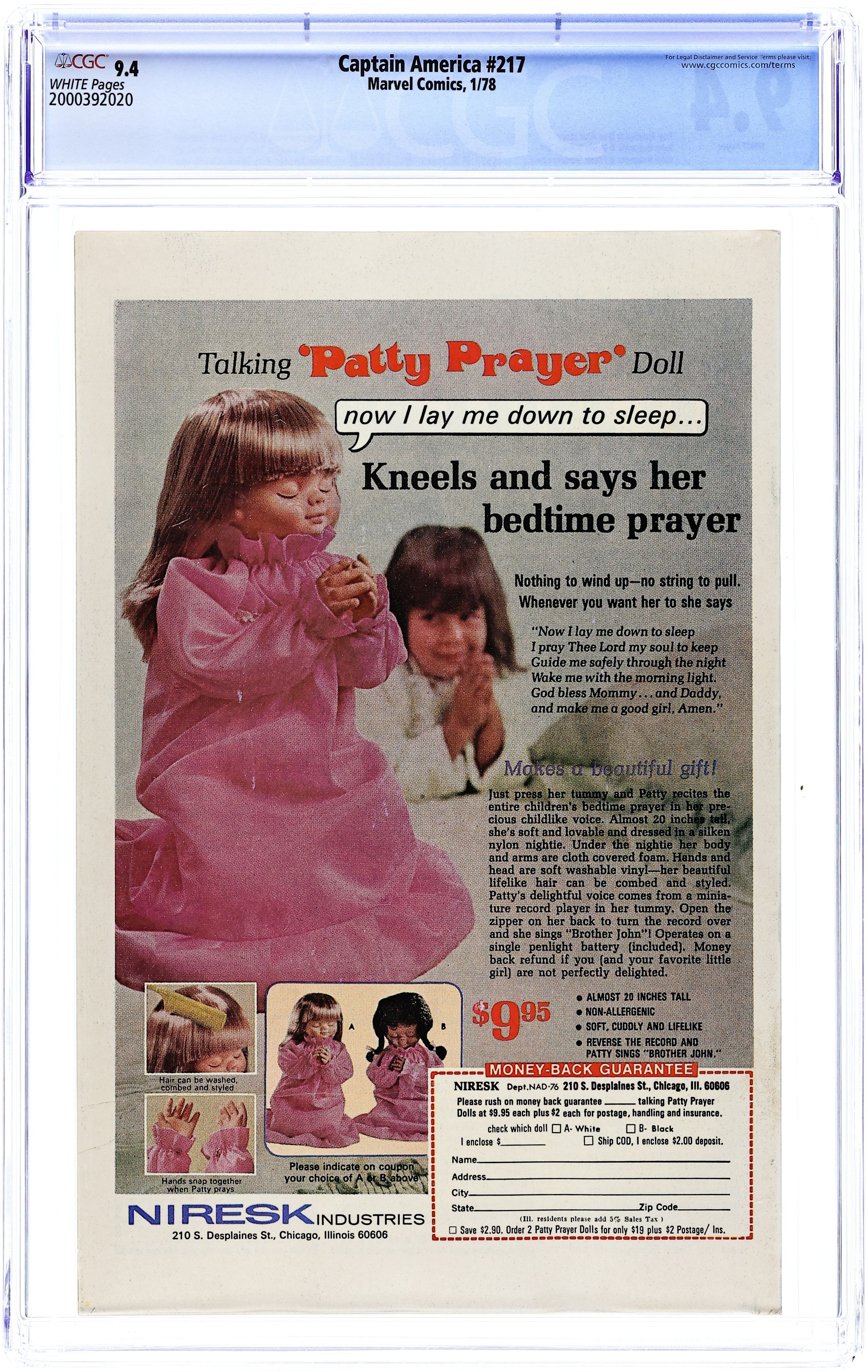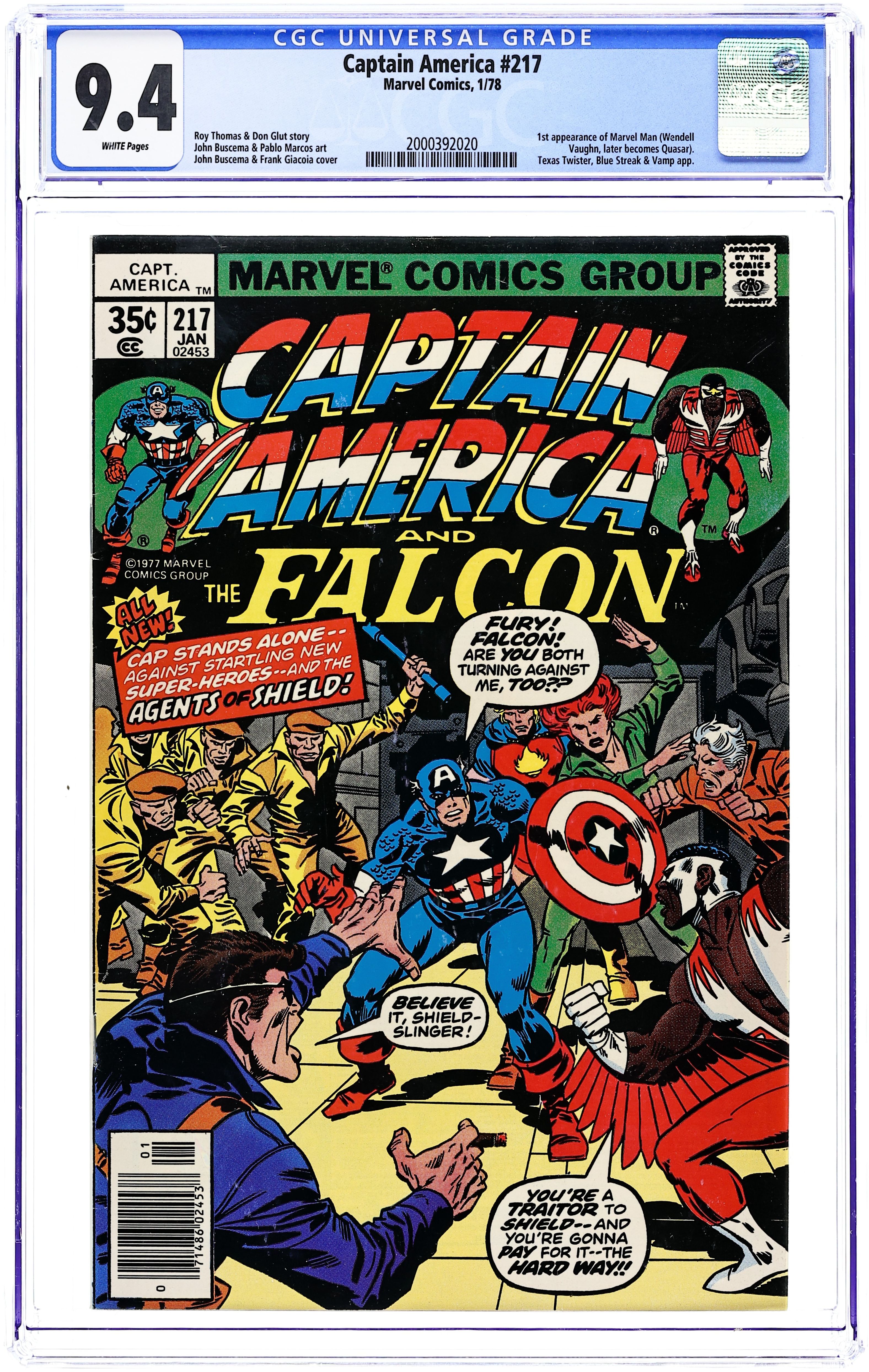 Tags: Marvel Legacy Numbering: Captain America (part 217), Captain AmericaCaptain America (1968 1st Series) 217 CGC 9.4