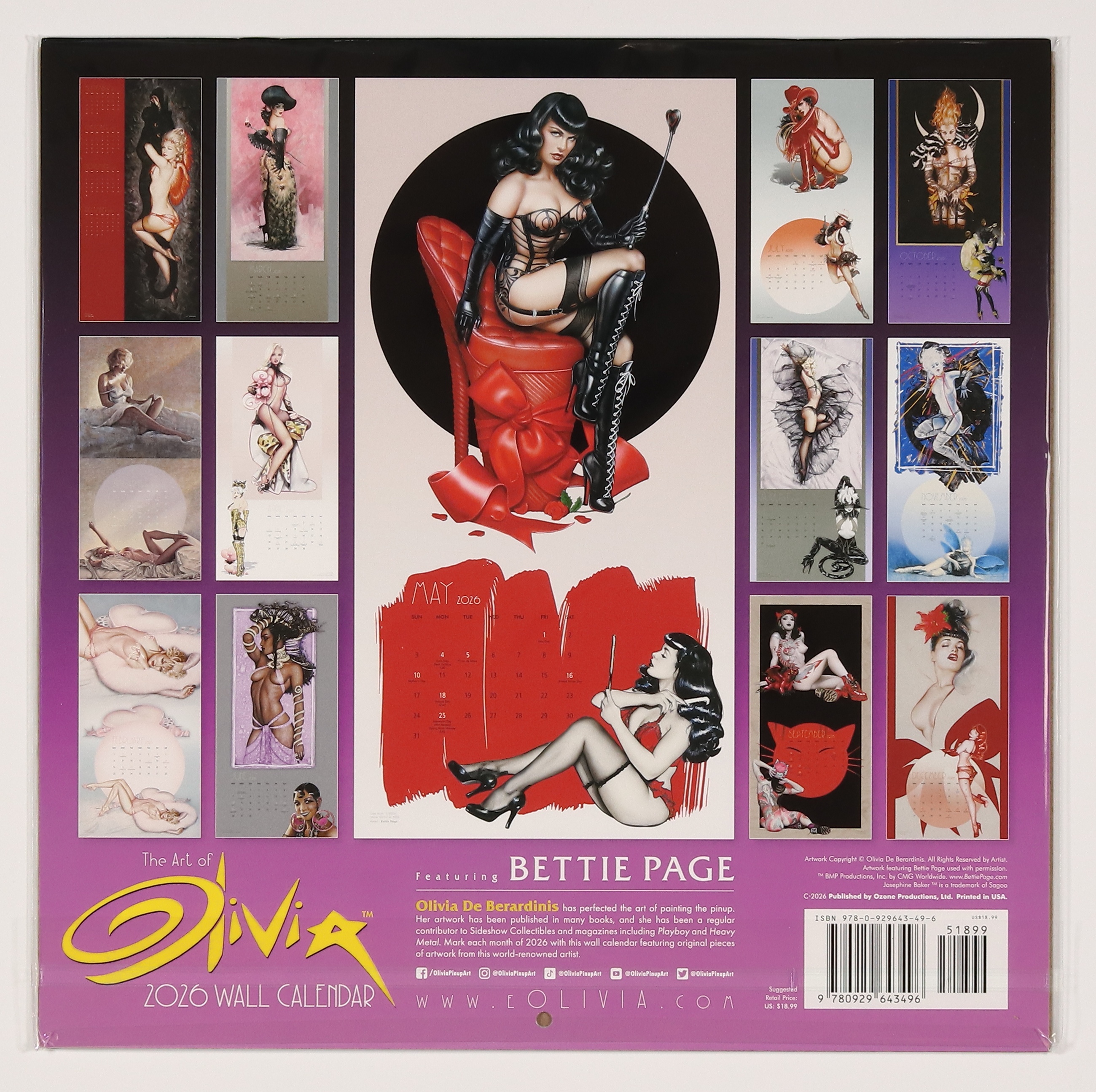 Art of Olivia 2026 Calendar featuring Bettie Page by Olivia De BerardinisPublished 2025Art of Olivia 2026 Calendar featuring Bettie Page by Olivia De Berardinis