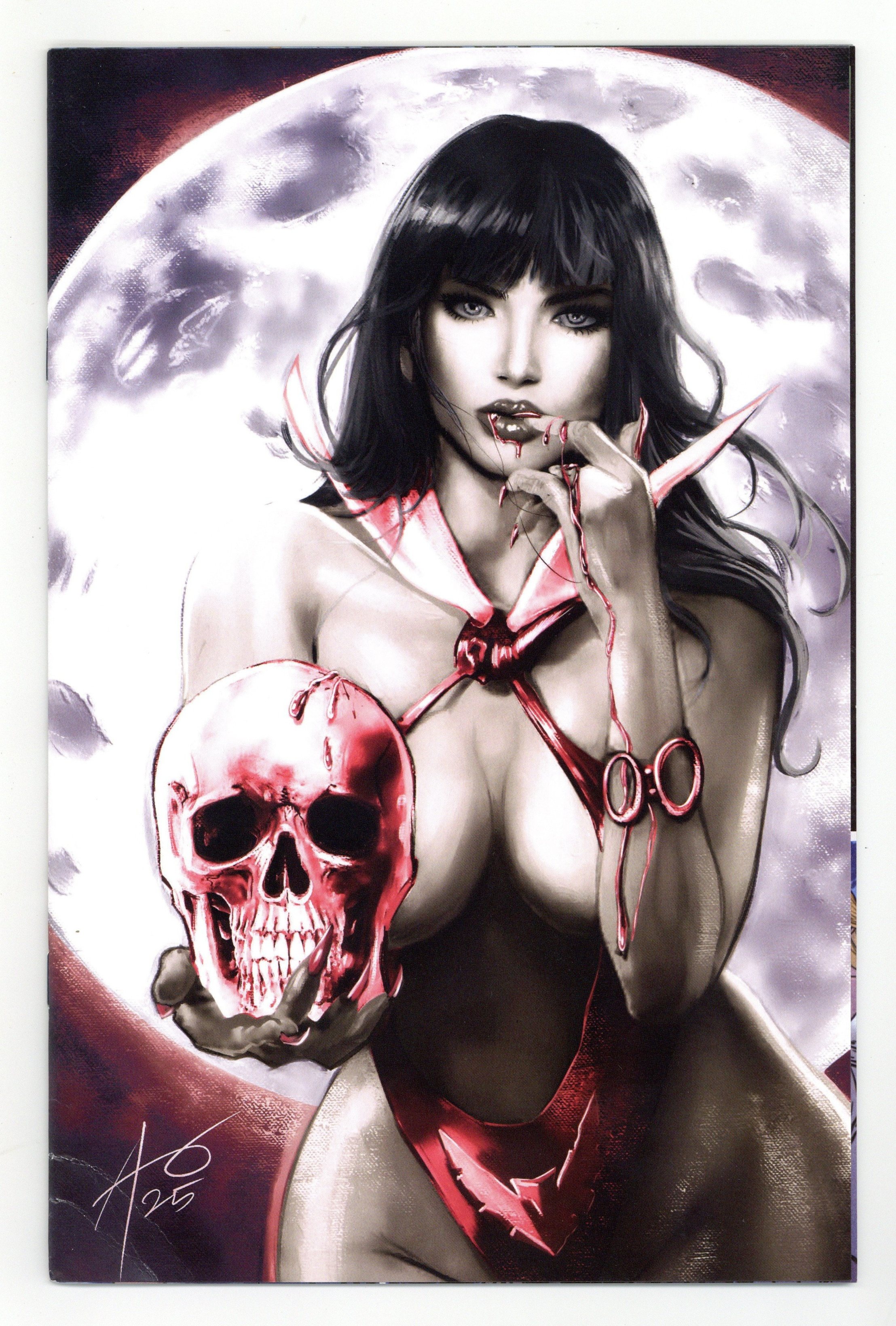 Ends Apr 17 10:16 PM CST Bid History 3 bids Current Bid $30 Your Secret Max Bid If you'd like to bid, please log in or register. Limited 1 for 15 Retailer Incentive Variant Cover.(W) Tom Sniegoski (A) Edu Menna (CA) Leirix Li THE RETURN OF HEMORRHAGE! As Vampirella and Walker continue to make their way across the burning plains of Hell and fight through its hostile hordes, a vision of Vampirellas mother, Lilith, plagues the Daughter of Drakulon. Meanwhile, more heroes from Sepulcher City are heading down to the increasingly popular infernal realm — where people are literally dying to get in! Veteran Vampi chronicler TOM SNIEGOSKI is joined by returning all-star artist EDU MENNA for the sixth issue of VAMPIRELLA: ARMAGEDDON — all clad in coruscating covers from FRANCESCO MATTINA, LESLEY LEIRIX LI, JOSEPH MICHAEL LINSNER, and fiery cosplay from IRELAND REID! 32 pages, full color, rated teen+. Cover price $4.99.