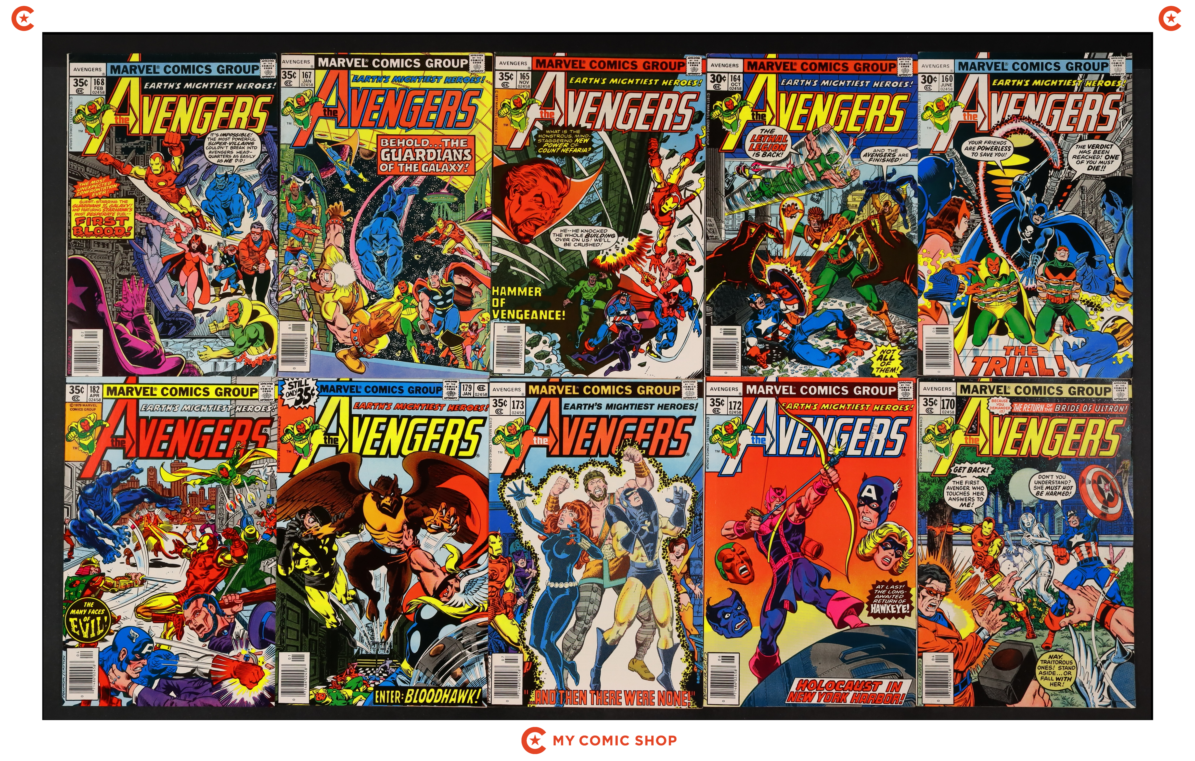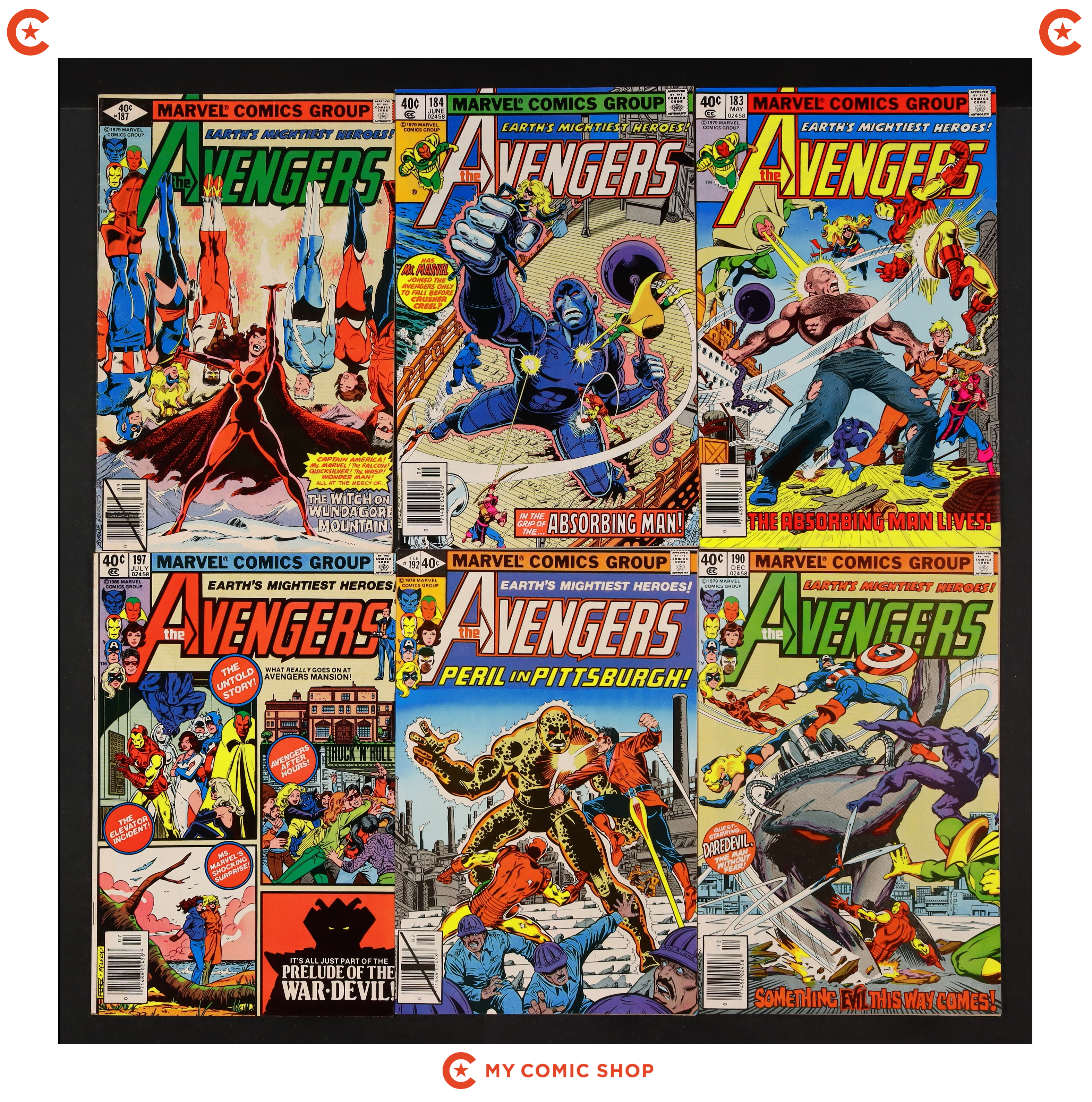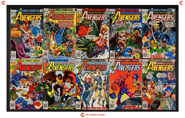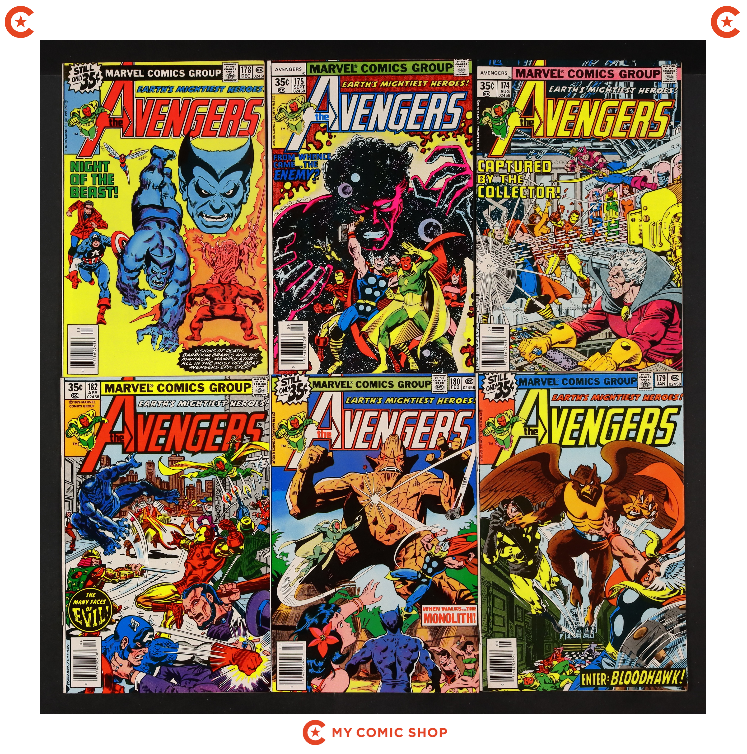 Issues 174, 175, 178-180, 182, 183, 184N, 187, 190, 192, and 197 of Avengers (1963 1st Series). Most will grade in the VF to FN range with a couple grading VG.