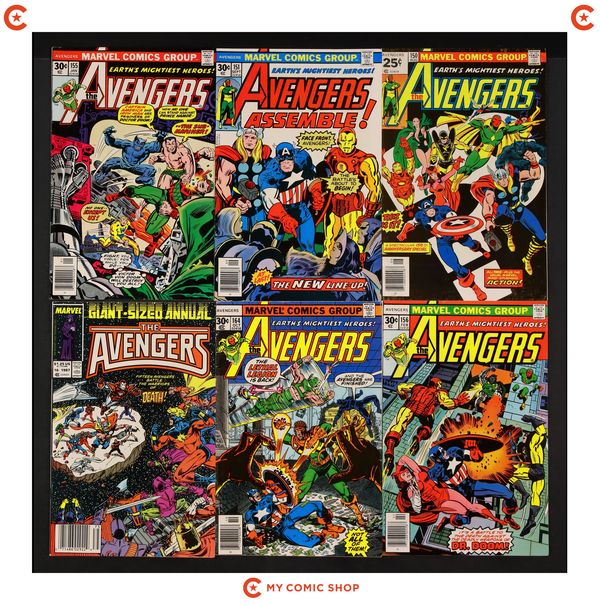 Issues 160, 164, 165, 167, 168, 170, 172, 173, 179, 182, 183, 184N, and 197 of Avengers (1963 1st Series). Most will grade in the VF- to FN range with a couple grading VG.