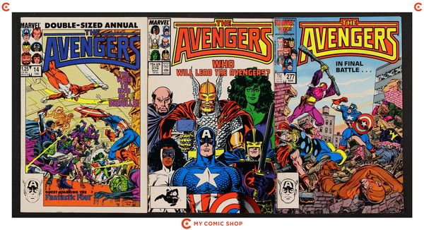 Issues 238, 256, 266, 270, 273, 274, 277, and 279 of Avengers (1963 1st Series); and 14 of Avengers (1963 1st Series) Annual. Most will grade in the VG range.