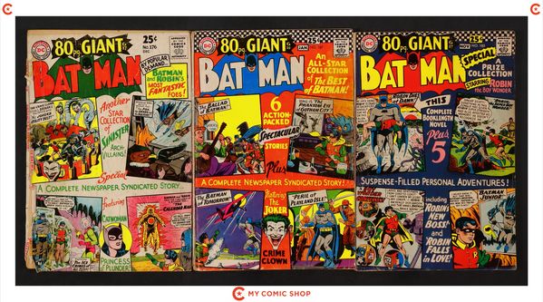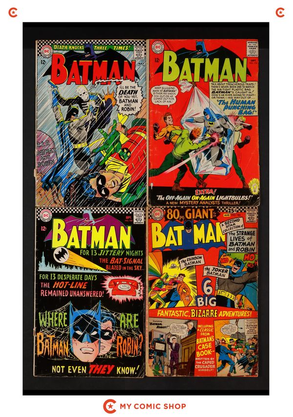 Issues 174, 176, 180, 182, 184, 185, 187 of Batman (1940). Most will grade in the FR to GD range with #176 grading PR
