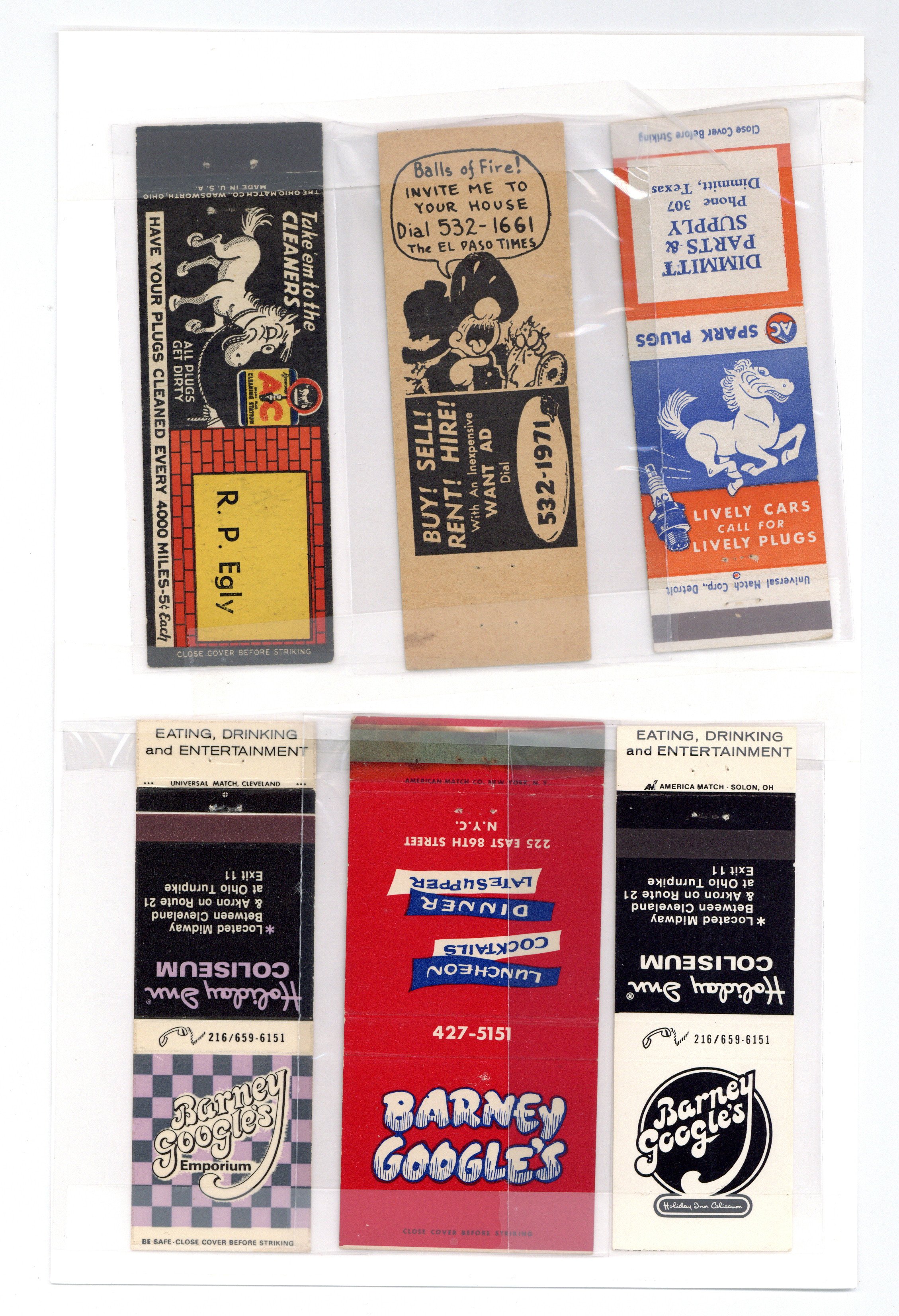 Barney Google Matchbook Covers (ca. 1960s-70s Universal/America/Ohio Match Co.). Group of six matchbooks by various manufacturers. All are unbound and do not include matches. Overall condition appears very good or better.