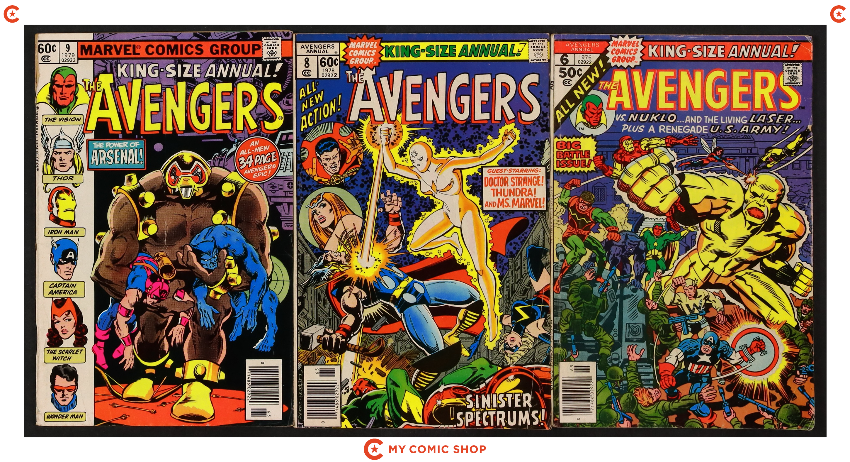 Issue 182, and Annuals 1, 5, 6, 8, 9 of Avengers (1963 1st Series). Most will grade in the GD to VG range with #282 grading PR and Annual #6 grading FN.