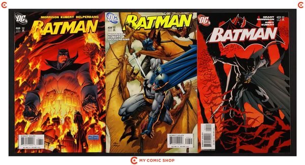 Issues 655A, 656, and 666 of Batman (1940). Most will grade in the VF range.