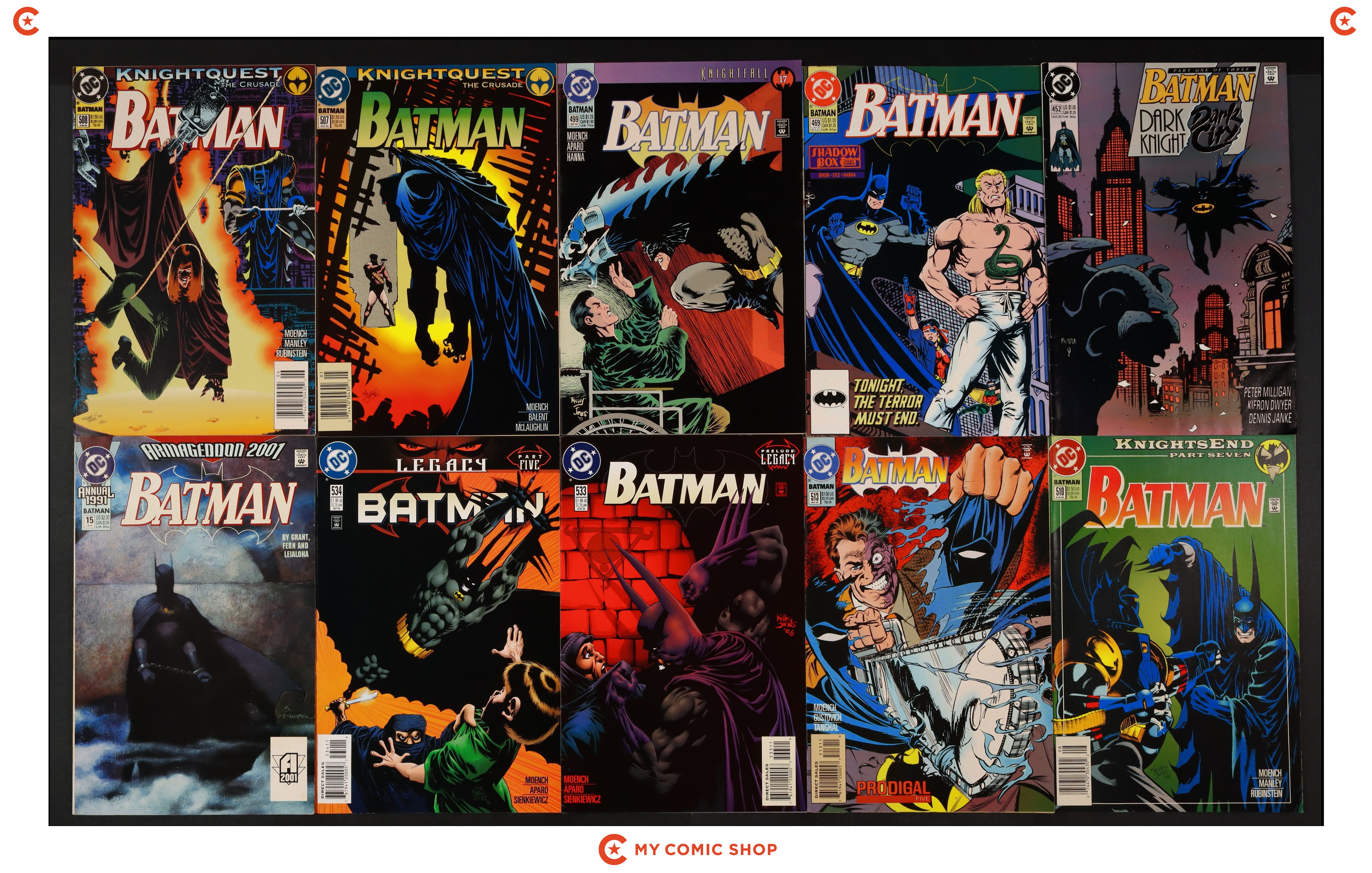 Issues 577, 578, 580, 588, 591, 598, 599, 603, 605, and 606 of Batman (1940). Most will grade in the NM to VF range with a couple grading closer to FN.