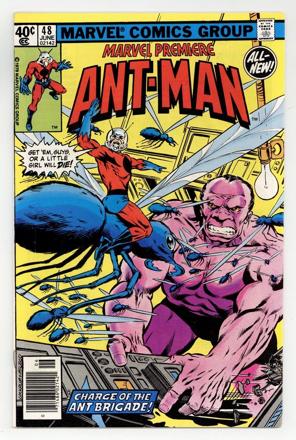 Starts Mar 23 Newsstand Edition. Cover pencils by Dave Cockrum, inks by Bob McLeod. "The Price of a Heart!", script by David Michelinie, pencils by John Byrne (breakdowns) and Bob Layton (finished art), inks by Bob Layton; Scott Lang, the new Ant-Man, attempts to get Dr. Sondheim out of the clutches of the mutated Darren Cross; However, he underestimates Cross' enhanced abilities and is defeated; His equipment disabled, Scott listens as Cross explains his heart condition and the implantation of a "nucleorganic pacemaker"; The device backfired, not only slowly mutating him into a Neanderthal-like giant but also wearing out his heart, necessitating periodic transplants from unwilling donors; Learning he is to be next in line to be a "donor" Scott manages to fix his equipment and escape, busting back into the surgical theatre just as Dr. Sondheim finished another operation; Ant-Man fights Cross. Next appearance of Ant Man is in Iron Man (Marvel, 1968 series) #125. 36 pgs., full color. Cover price $0.40.