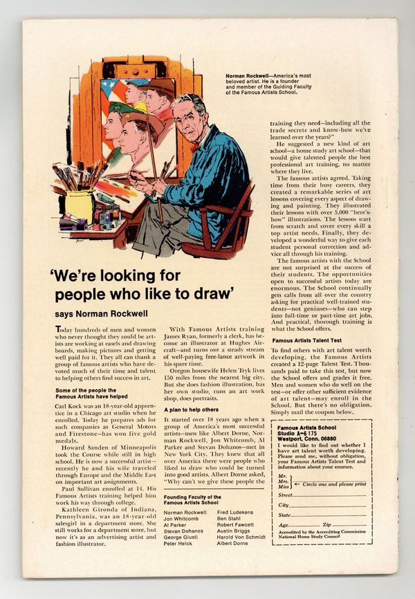 Starts Mar 23 Cover by Jack Kirby, George Roussos and Vince Colletta. Stories by Stan Lee. Art by Tom Palmer, Jack Kirby & Paul Reinman and Joe Orlando & Vince Colletta. It's the wondrously weird world of the Watcher in "Melvin and the Martian," reworked from a story in Amazing Adult Fantasy (1961) #12. Plus: Magneto and his new Brotherhood of Evil Mutants steal a freighter and use it to take over the South American nation of Santo Marco; the X-Men invade and take the country back; and Xavier is caught in an explosion and loses his mental powers in "The Brotherhood of Evil Mutants!", reprinted from Uncanny X-Men (1963) 1st Series #4. Also: A wealthy and ruthless financier is exposed as a criminal and begins his reign as the Owl; the Owl hires Matt Murdock to get him out of his legal troubles; the Owl gathers a gang, traps Daredevil and Karen and begins his bid to rule the underworld; and DD escapes and takes the Owl down in "The Owl, Ominous Overlord of Crime," reprinted from Daredevil (1964 1st Series) #3. Softcover, 64 pages, full color. Cover price $0.25.