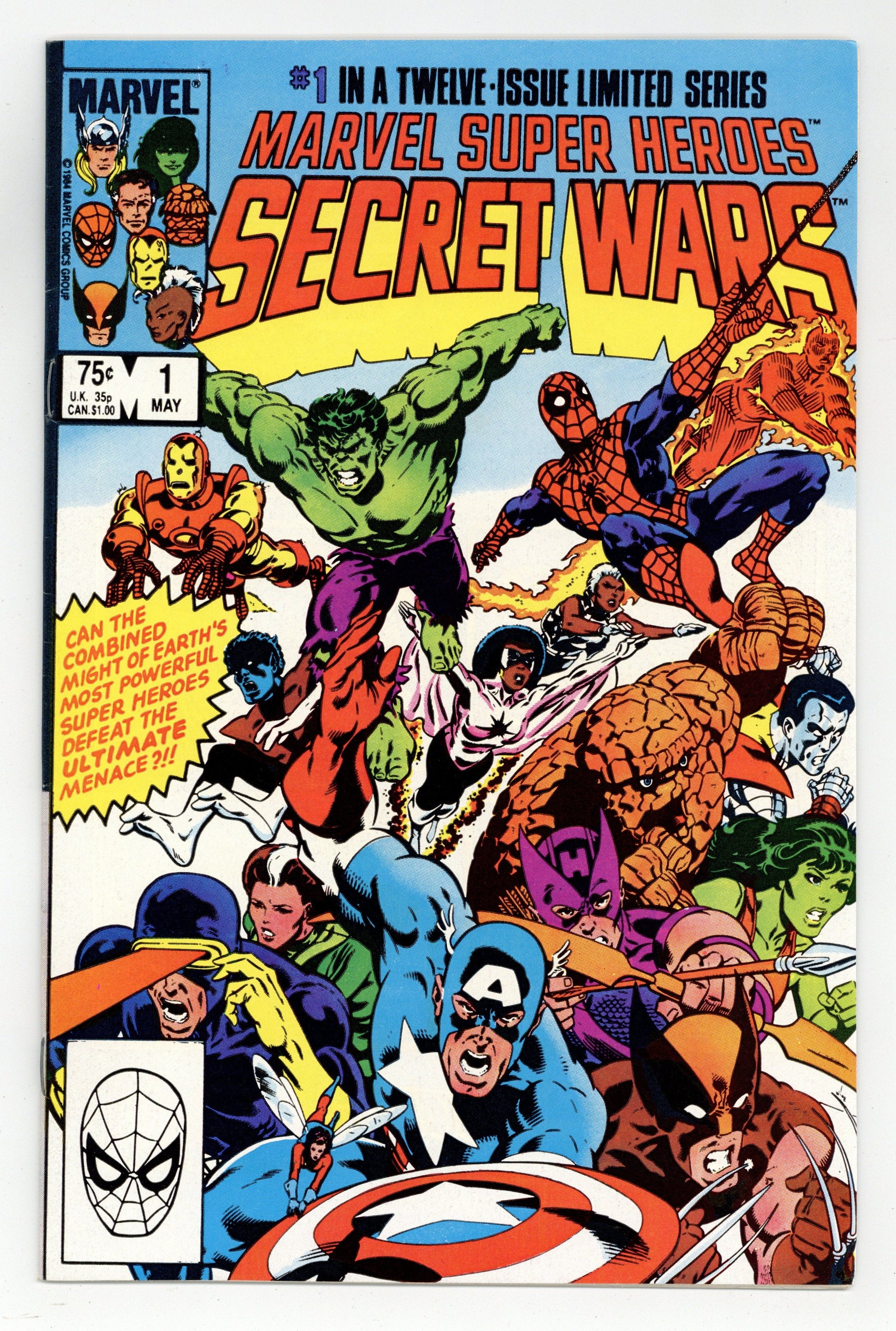 Starts Mar 23 Direct Edition. "The War Begins!" Part 1 of 12. Story by Jim Shooter. Art by Mike Zeck and John Beatty. This is it, the granddaddy of all epic events. Before Identity Crisis, Infinite Crisis, House of M, Civil War, and Infinity Gauntlet there was Secret Wars. A nigh omnipotent being from beyond has, for lack of a better word, kidnapped the greatest heroes and deadliest villains in the Marvel Universe and whisked them to the far side of the universe to battle for the ultimate prize. One thing is for certain, the lives of these heroes and villains will never be the same again. - This is the first printing. Any 2nd printing will have the words "Second Printing" at the bottom of the first page. NOTE: Nearly all first printings contain a "Blue Galactus" from a printing error (a lack of magenta printing plates) that was corrected in later printings. While small number of First printings may have the correct colors, the majority of copies will have "Blue Galactus". Due to the frequency, "Blue Galactus" variants should be treated the same as other First Printings. 36 pages, full color. Cover price $0.75.