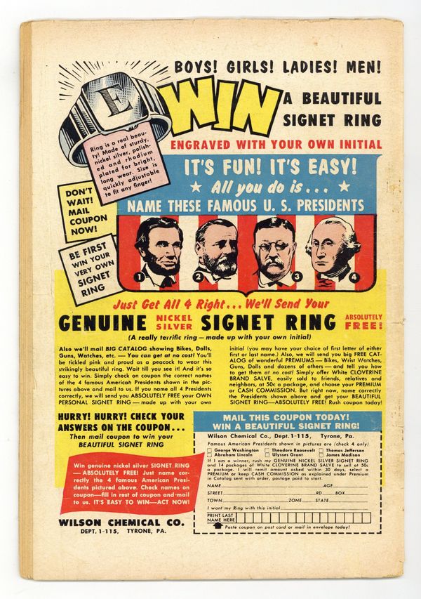 Starts Jan 19 Cover pencils by Ramona Fradon, inks by Charles Paris. 2nd appearance of Metamorpho in "The Junk Yard of Doom," script by Bob Haney, pencils by Ramona Fradon, inks by Charles Paris; World War II-era traitor Maxwell Tremaine kidnaps Metamorpho with the aid of the Orb of Ra, tries to make him repair the broken super-weapons in his "junk yard of doom" for use in world conquest, and ends up battling the Element Man with them when he refuses. Don't Give Fire A Place to Start! public service announcement starring Superboy, script by Jack Schiff, art by Win Mortimer. The Human Chemical Plant article about Metamorpho. From the Inventor's Workbench filler page about a lunch box patent by Henry Boltinoff. 36 Pages, Full Color. Cover price $0.12.