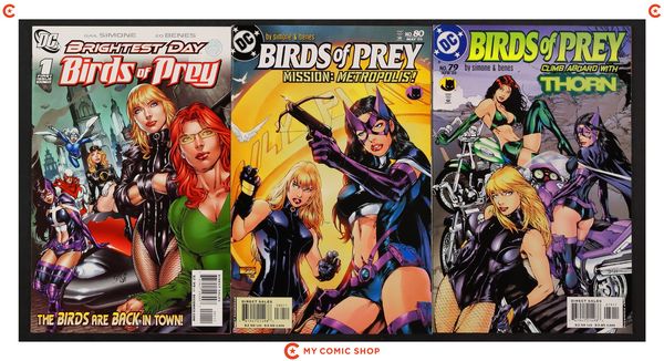 Issues 79, 80 of Birds of Prey (1999 1st Series), and issue 1A of Birds of Prey (2010 2nd Series). Most will grade in the FN to VF range.