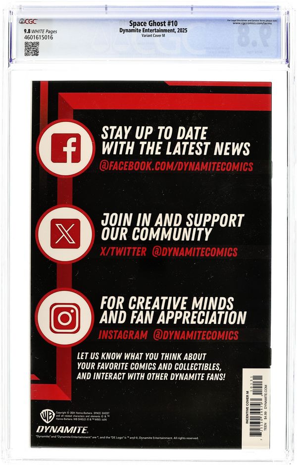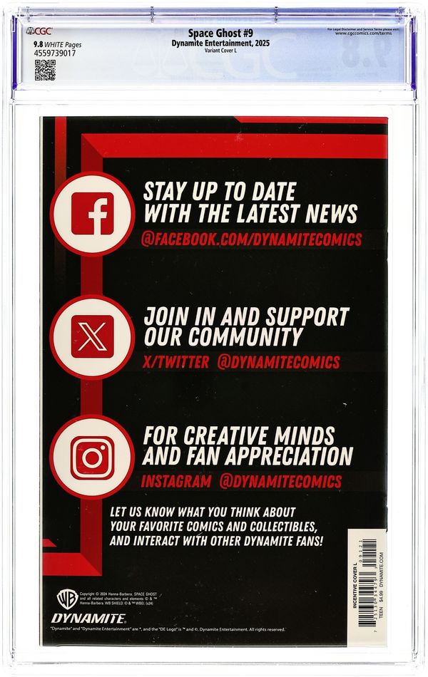 Published 2025 by Dynamite Entertainment.Space Ghost (2024 Dynamite) 9E CGC 9.8