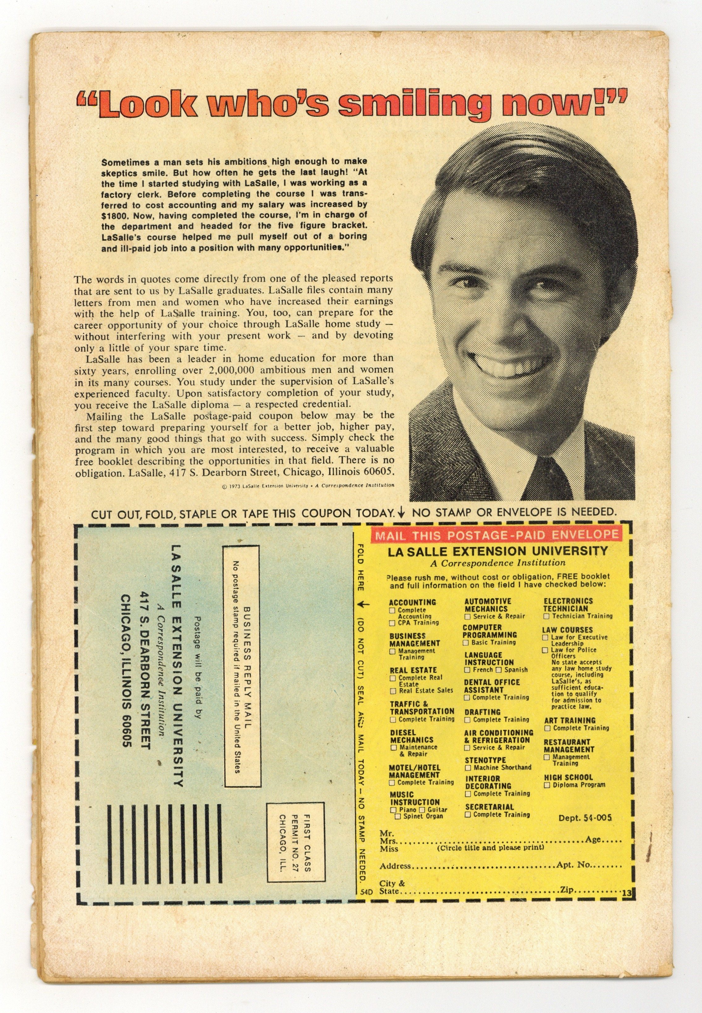 Ends Apr 27 7:13 PM CST Bid History 5 bids Current Bid $13 Your Secret Max Bid If you'd like to bid, please log in or register. "Whodunit!" Script by Len Wein. Art by Sal Buscema (layouts) and Mike Esposito (finishes). Cover by John Romita. In shocking fashion the co-developer of the Worldwide Habitual Offender database is found murdered in his research lab! And the task of finding the killer falls to none other than your friendly neighborhood Spider-Man! The web-slinger scours the city searching for suspects! But the trail of clues leads back to the lab! Who is the killer? Who indeed! Cameo appearances by Joe Robertson and J. Jonah Jameson. (Notes: The letters page includes a statement of ownership: average print run 530,714; average paid circulation 273,773. This story was reprinted in Marvel Tales 132. A 30-cent cover price variant exists for this issue.) 36 pages. Cover price $0.25.