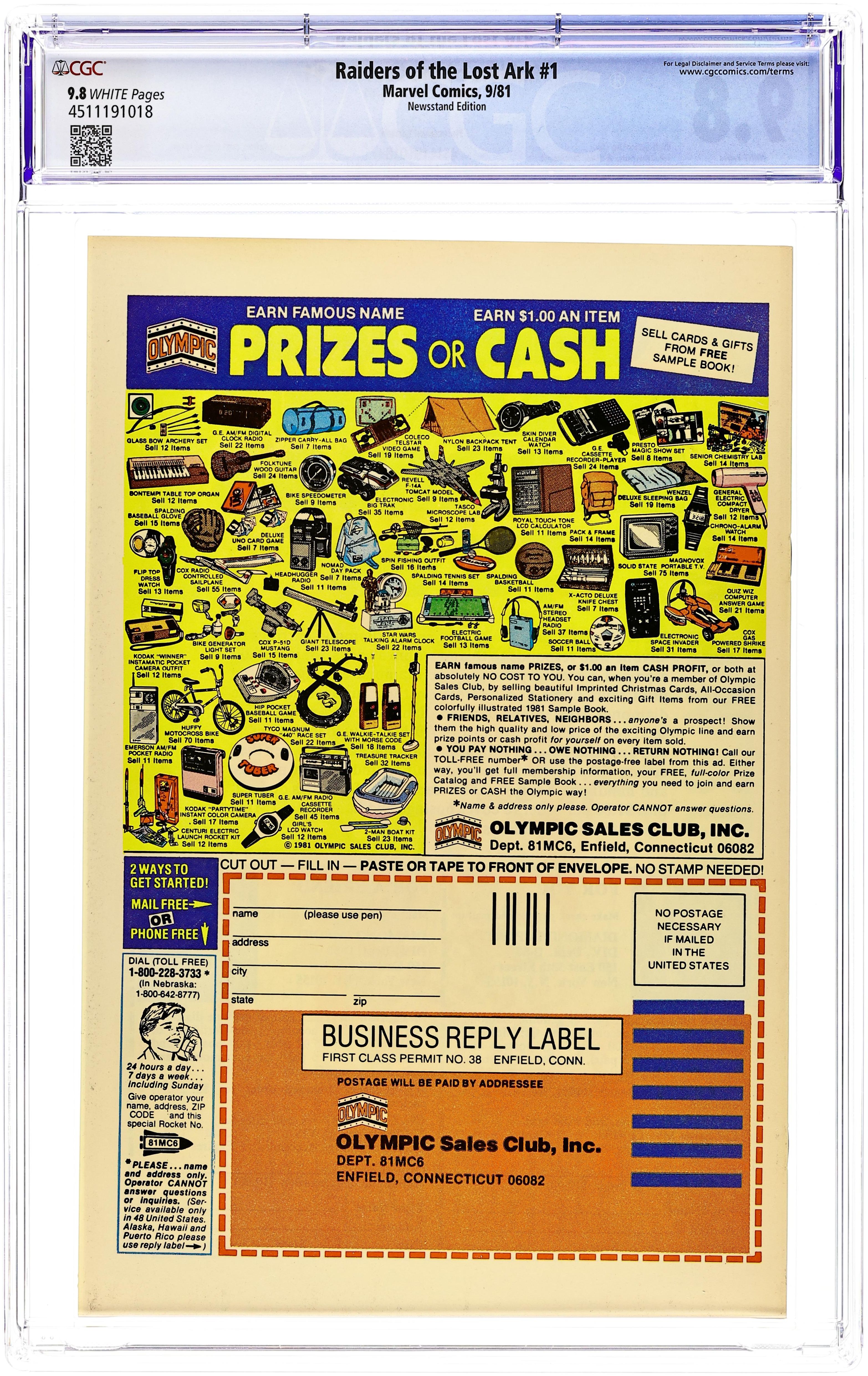 Raiders of the Lost Ark (1981 Marvel) 1N CGC 9.8