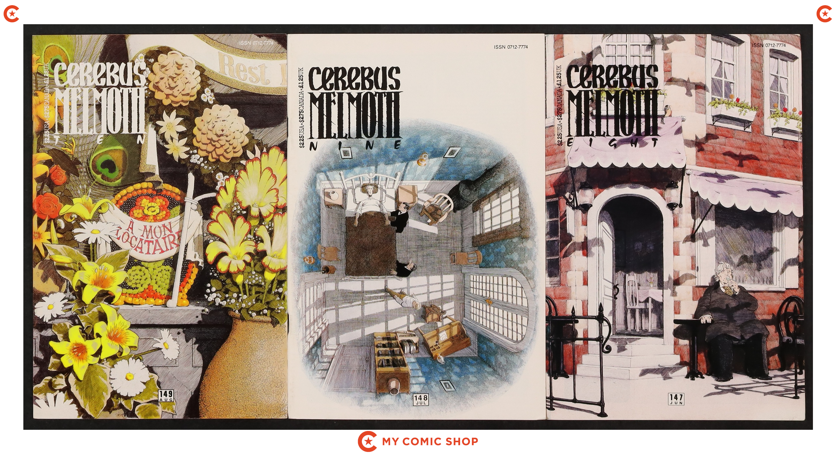 Issues 38, 39, 59, 60, 62, 66, 84, 85, 87, and 88 of Cerebus (1977-2004 Aardvark-Vanaheim). Most will grade in the FN range with some grading VG.