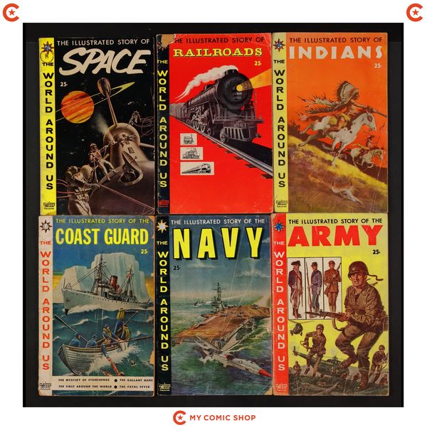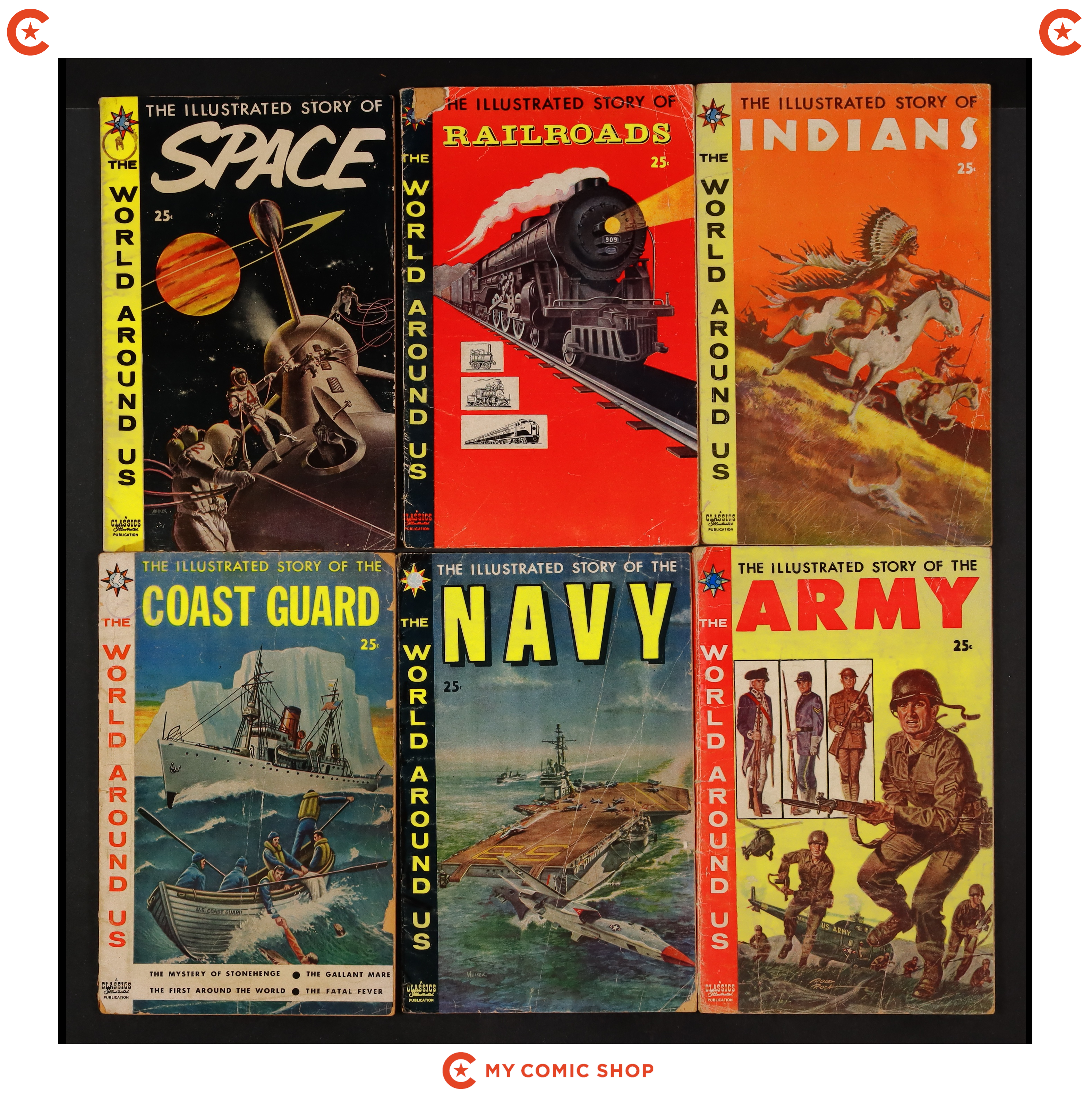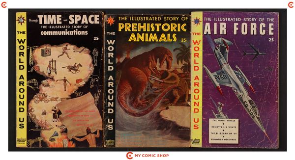 Issues 2, 4, 5, 9, 10, 12, 13, 15, 20 of World Around Us (1958-1961 Gilberton). Most will grade in the FR to GD+ range.
