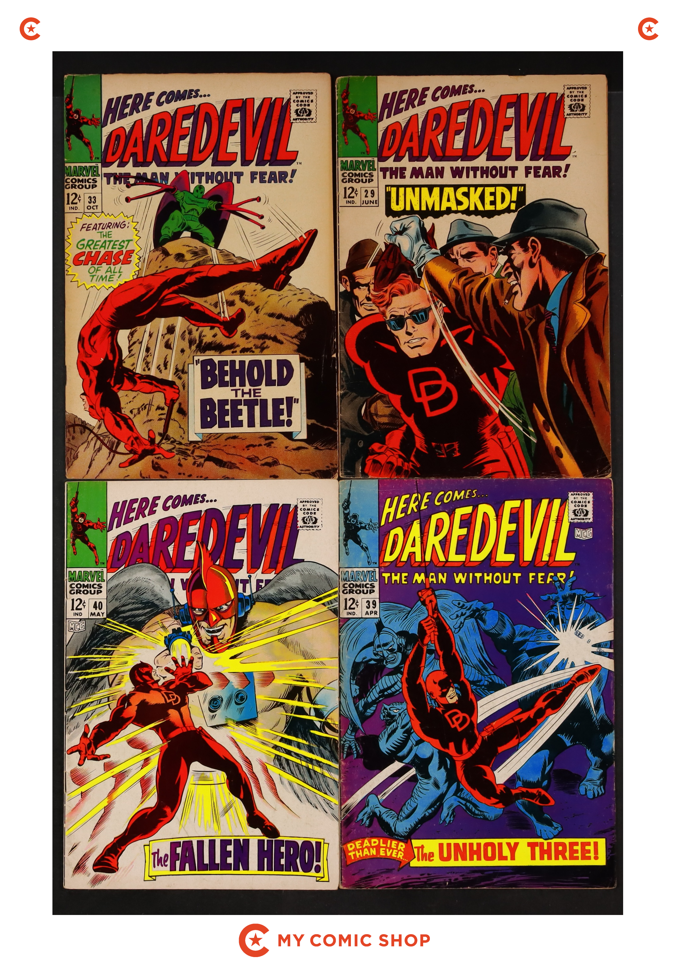 Issues 29, 33, 39, 40, 48, 51, and 80 of Daredevil (1964 1st Series). Most will grade in the VG range.
