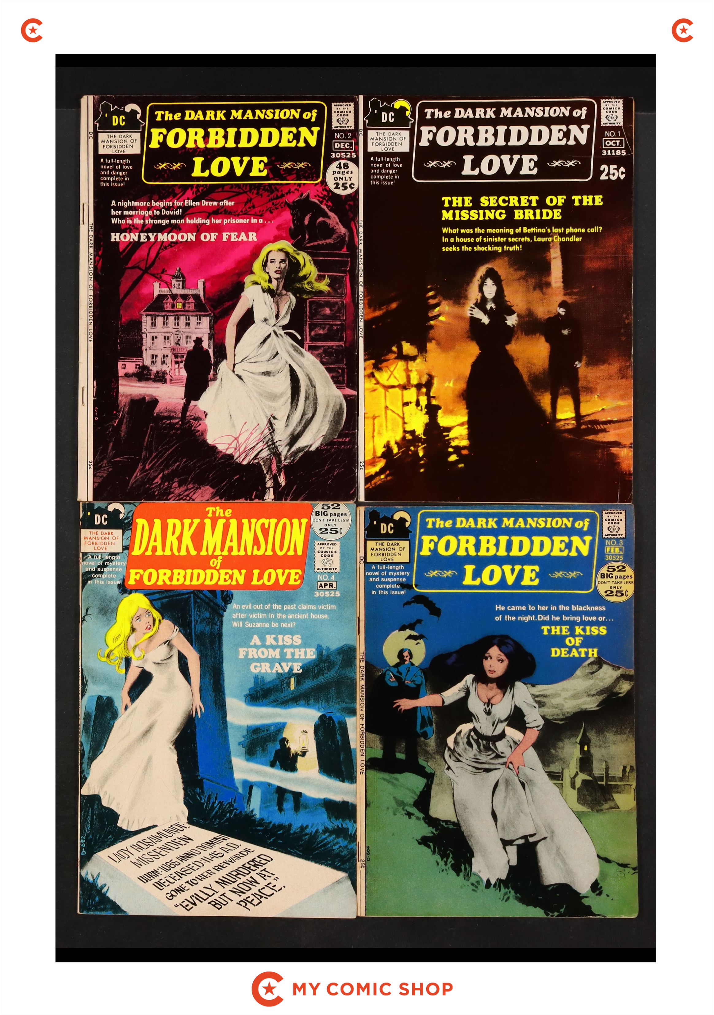 Issues 1-4 of Dark Mansion of Forbidden Love (1971 DC). Most will grade in the VG- to VG/FN range.