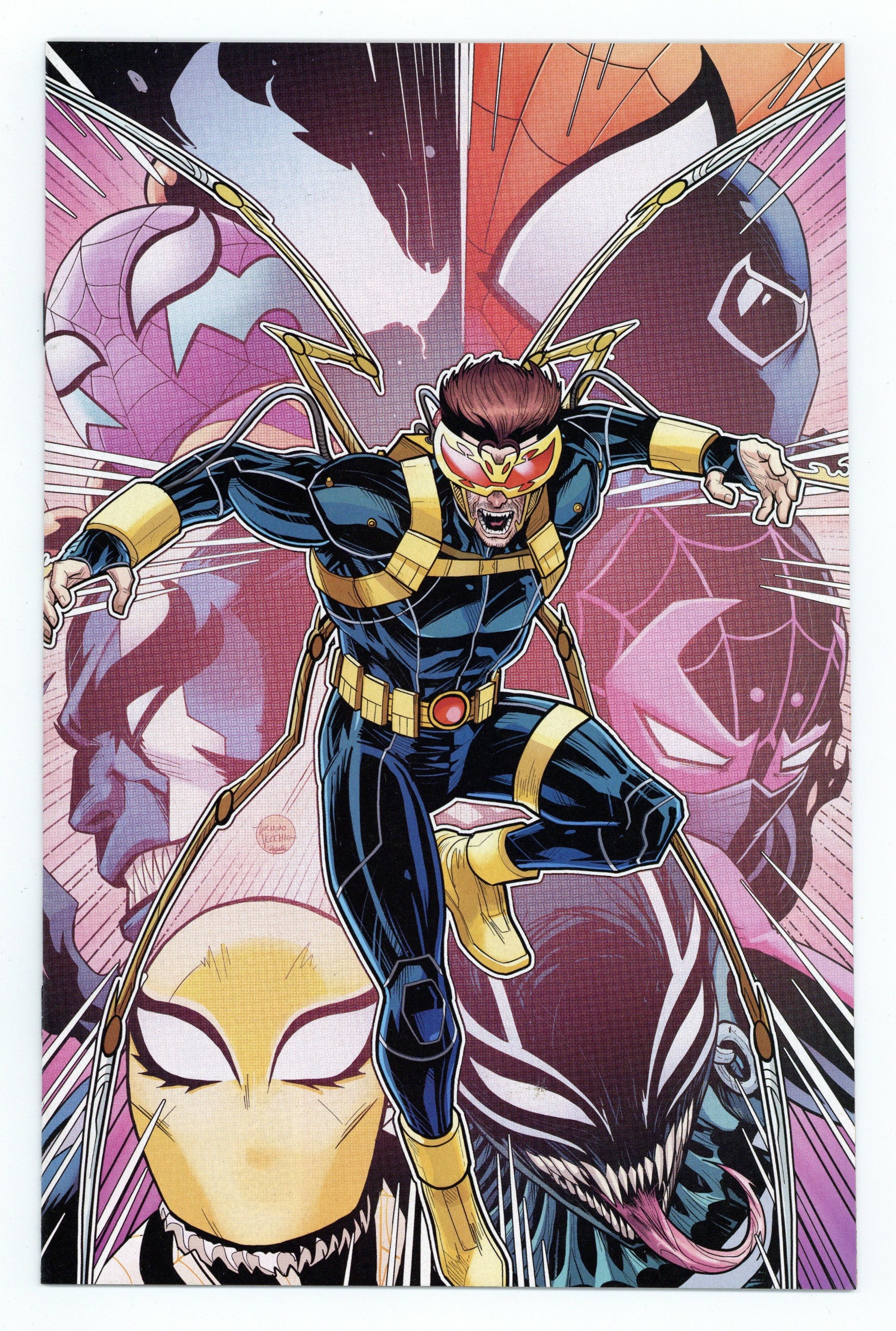 Starts Apr 20 Limited 1 for 100 Retailer Incentive Variant Cover. Written by Matt Groom, Kyle Higgins. Art and Cover by Luciano Vecchio. THE WAR OF THE WEBS SPINS ON! The spiders and symbiotes are stuck between a hard place and an immoveable object trying to save their multi-verses from being wiped from existence! Which will come out on top now that the Hive Mind and the Great Web of Life and Destiny have selected their fighters? 28 pages, full color. Rated T+ Cover price $3.99.
