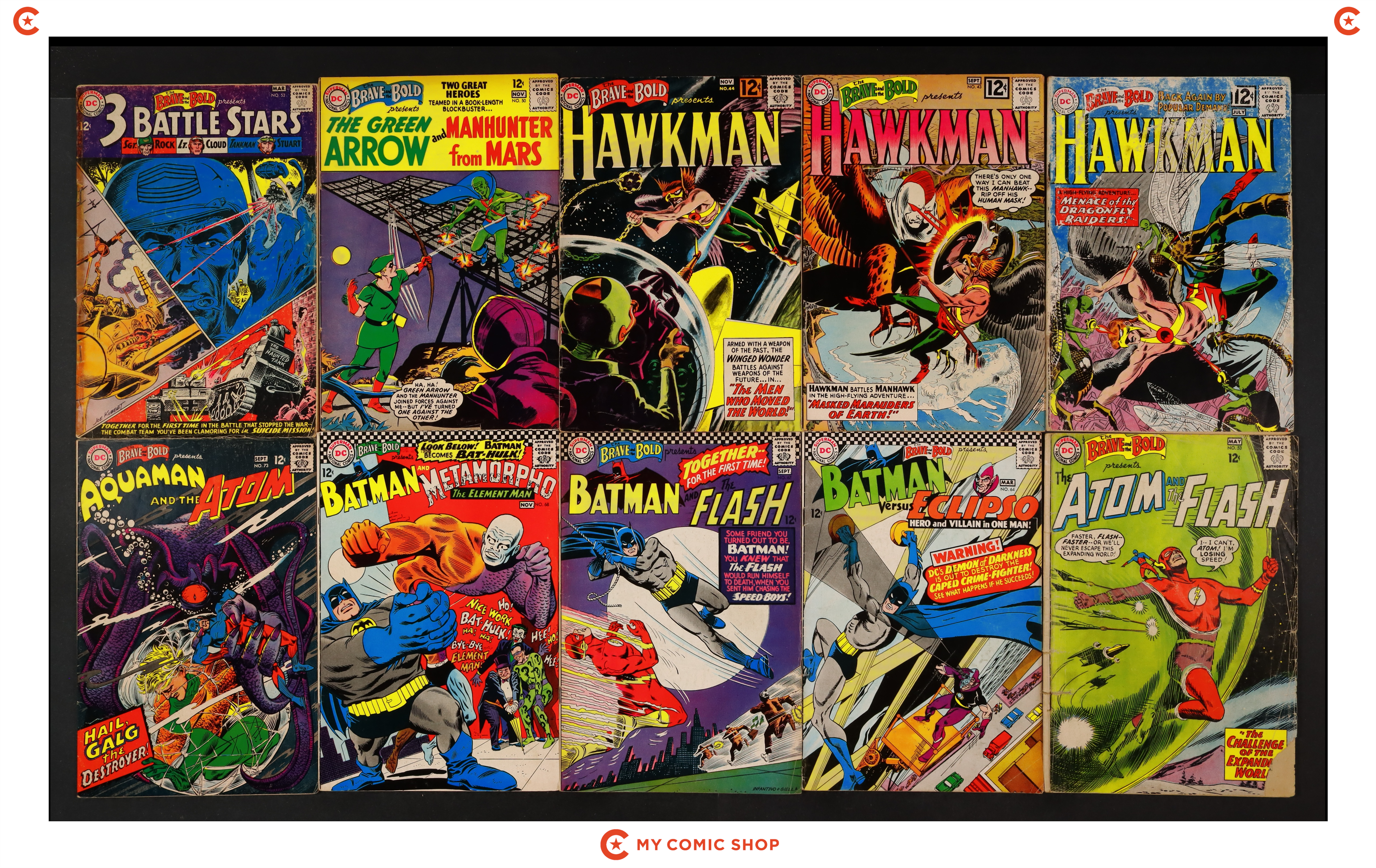 Issues 76, 88, 148, 162, 173, 175, 177, 193, 196, 197 of Brave and the Bold (1955 1st Series DC). Most will grade in the GD to VG range with #173, #177, #193 grading FN.