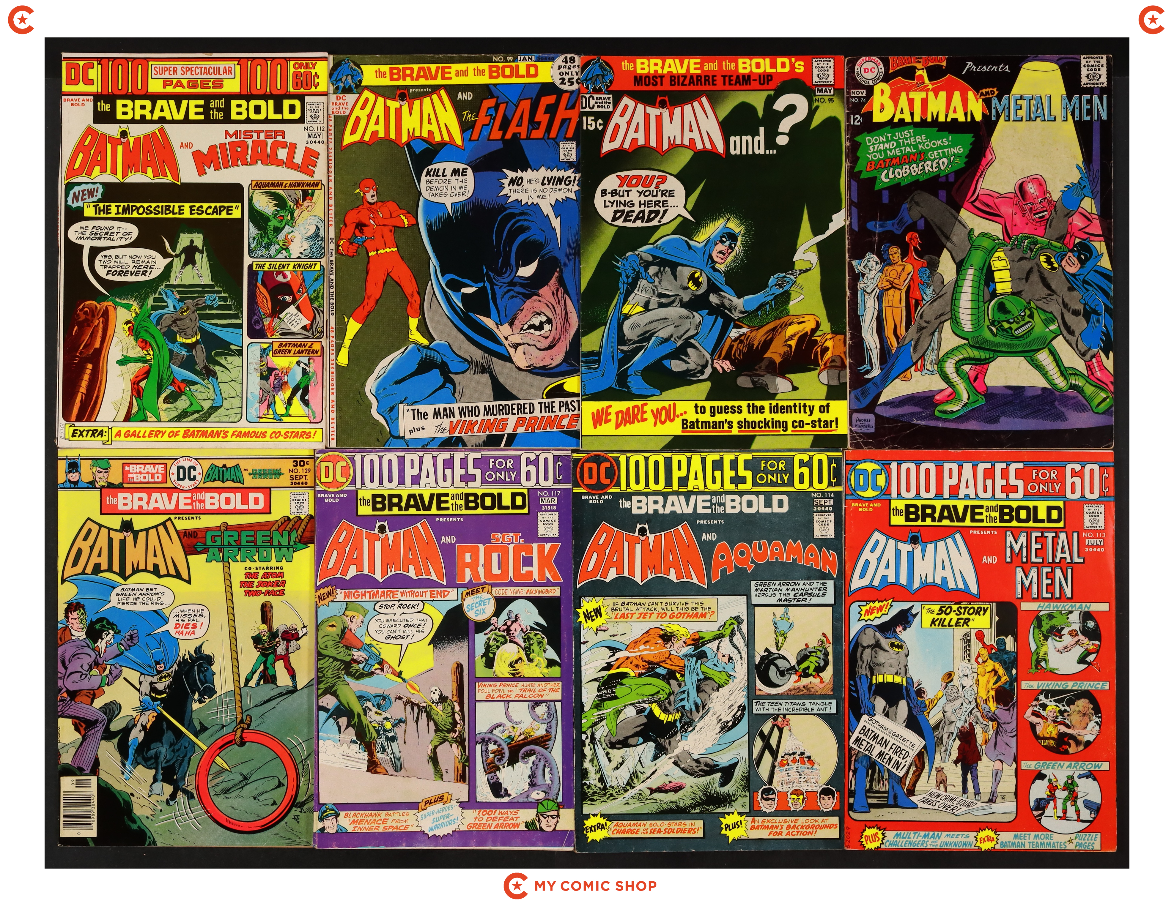 Issues 74, 95, 99, 112-114, 117, and 129 of Brave and the Bold (1955 1st Series DC). Most will grade in the FN to VG range.