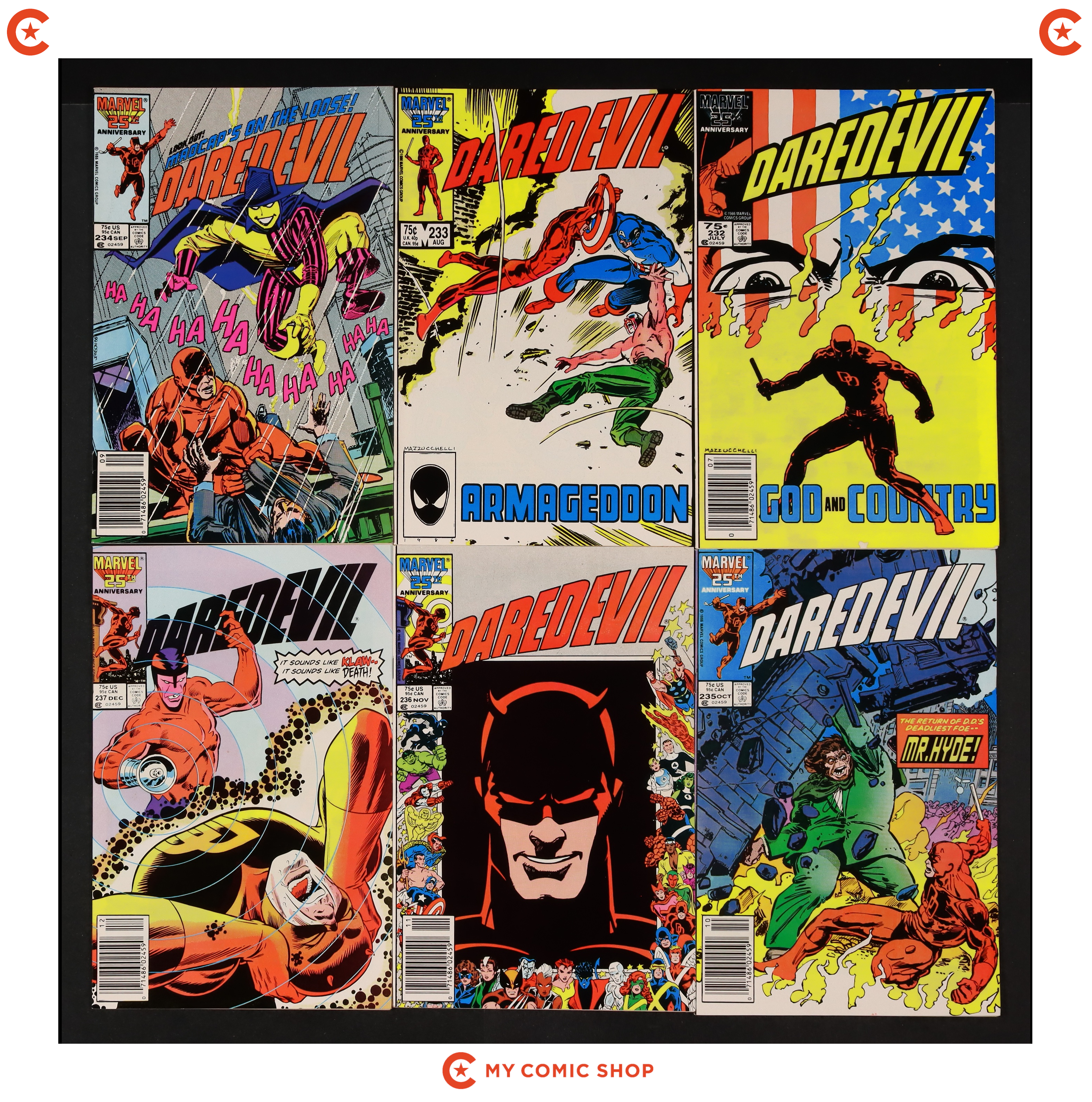 Direct Edition. Cover pencils by John Romita, Jr., inks by Al Williamson. First appearance of Typhoid Mary in Typhoid!, script by Ann Nocenti, pencils by John Romita Jr., inks by Al Williamson; Typhoid Mary blows into town and starts robbing the Kingpin's operations; Thinking he has finally found a way to get to Daredevil, Kingpin offers Typhoid a million dollars if she can make DD fall in love with her and then crush him; Matt meets Mary. 32 pgs. Cover price $0.75. Cover price $0.75.