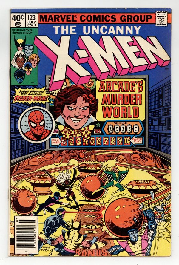 Starts Mar 23 Newsstand Edition. "Listen - Stop Me if You've Heard It - But this One will Kill You!" Part 1 of 2. Guest-starring Spider-Man and Colleen Wing. Story by Chris Claremont and John Byrne. Art by John Byrne and Terry Austin. Cover by Terry Austin. One by one the X-Men are abducted. Now they must fight for their lives if they hope to survive the sinister creature of the diabolical Arcade - Murder World! NOTE: Uncanny X-Men #123 and #142 are rare commodities in the realm of comics as they are two of the very few covers where inker extraordinaire Terry Austin actually does the pencils as well. - Odinson Lone Star Comics Archivist. 36 pgs. Cover price $0.40.