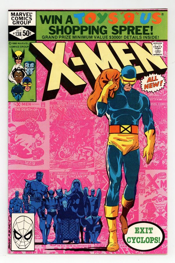 Starts Mar 23 Direct Edition. "Elegy!" Story by Chris Claremont and John Byrne. Art by John Byrne and Terry Austin. In the tragic aftermath of last issue's stunning events, the X-Men bury one of their own. Scott relives the history of X-Men and reflects. Overcome with grief, Cyclops decides to leave the X-Men. The team is forced to push on without their heart, Jean Grey, and their soul, Scott Summers. As one member leaves a new member shows up. Featuring flashback appearances by Magneto and the Brotherhood of Evil Mutants, Ka-Zar, the Stranger, Juggernaut, Master Mold and the Sentinels, Count Nefaria, Plant Man, Eel, Porcupine, the Living Laser, the Super-Adaptoid, Mimic, Cobalt Man, Spider-Man, Doctor Strange, Mole Man, Tyrannus, Grotesk, Mesmero, the Living Monolith, Sauron, Sunfire, Krakoa, the Ani-Men, Black Tom Cassidy, the Shi'ar Imperial Guard, Alpha Flight, Garokk the Petrified Man, Moses Magnum, Arcade, Jason Wyngarde/Mastermind, Proteus, the Hellfire Club, and the Dark Phoenix. 36 pgs. Cover price $0.50.