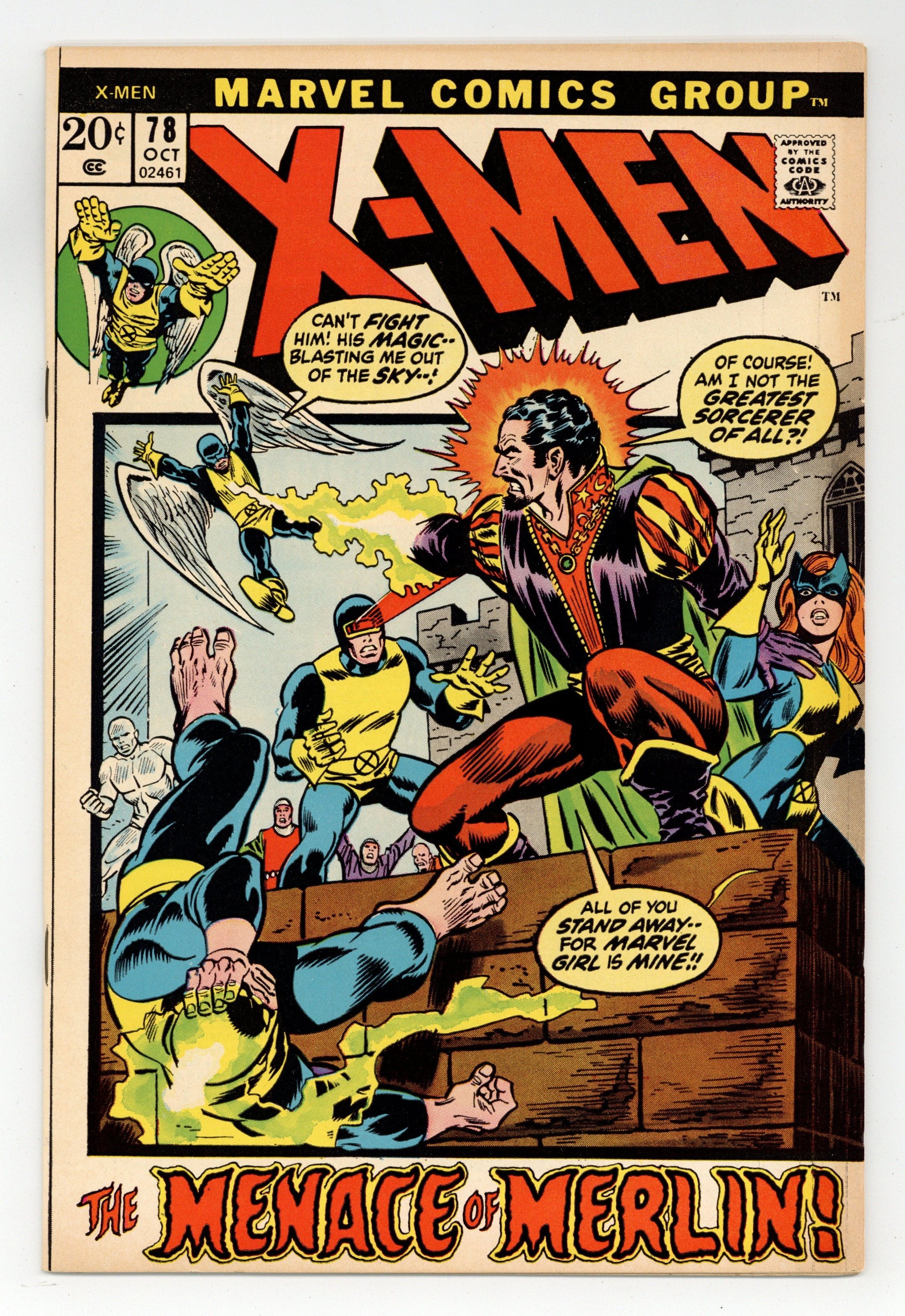 Starts Mar 23 Cover pencils by George Tuska. The Menace of Merlin!, script by Roy Thomas, pencils by Jack Sparling, inks by John Tartaglione; the X-Men battle Warlock, who reveals that he used to be Merlin the Magician;Thor cameo; reprinted from issue 30. Cover reprint, pencils by Jack Kirby. 36 pgs. $0.20. Cover price $0.20.