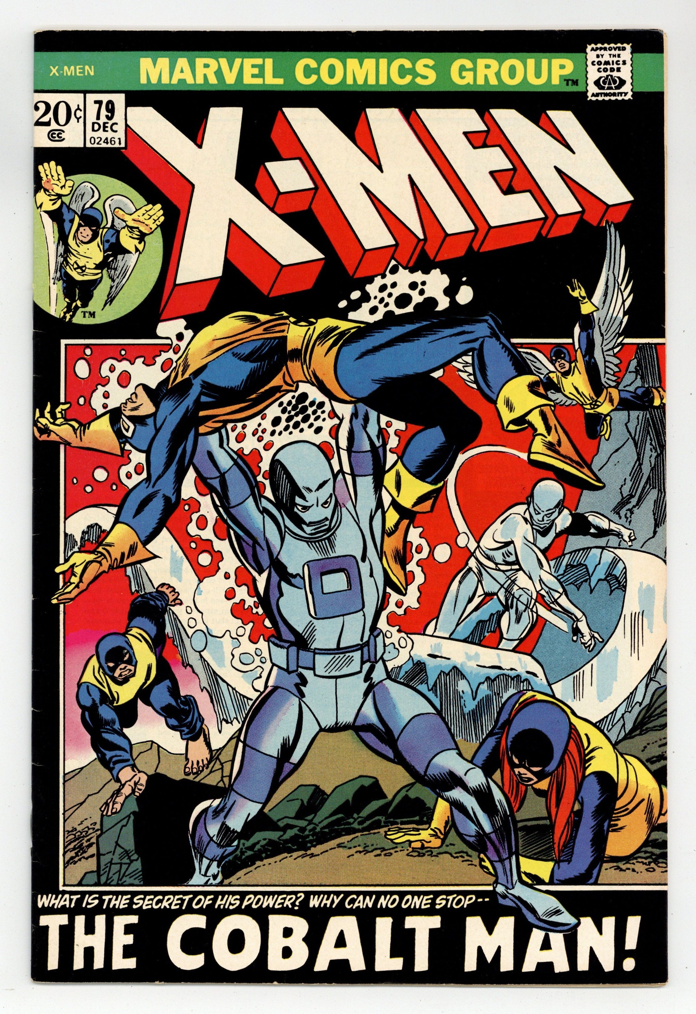 Starts Mar 23 Cover pencils by Gil Kane, inks by Frank Giacoia. We Must Destroy the Cobalt Man, script by Roy Thomas, pencils by Werner Roth, inks by John Tartaglione; The X-Men are given a weekend off and head out for some fun; Cyke and Angel visit Jean in college and find her engaged with brothers Ted and Ralph Roberts; Ralph, who used to work for Tony Stark, takes them all to his lab where he puts on his new Cobalt Man suit to impress his brother; Going a little batty, Cobalt Man wrecks the lab and heads out to Stark Industries to confront his old boss; The X-Men assemble to battle him before his suit becomes radioactive and blows up; Iron Man and Juggernaut cameos; reprinted from issue 31. Cover reprint, art by Dan Adkins. 36 pages, full color. Cover price $0.20.