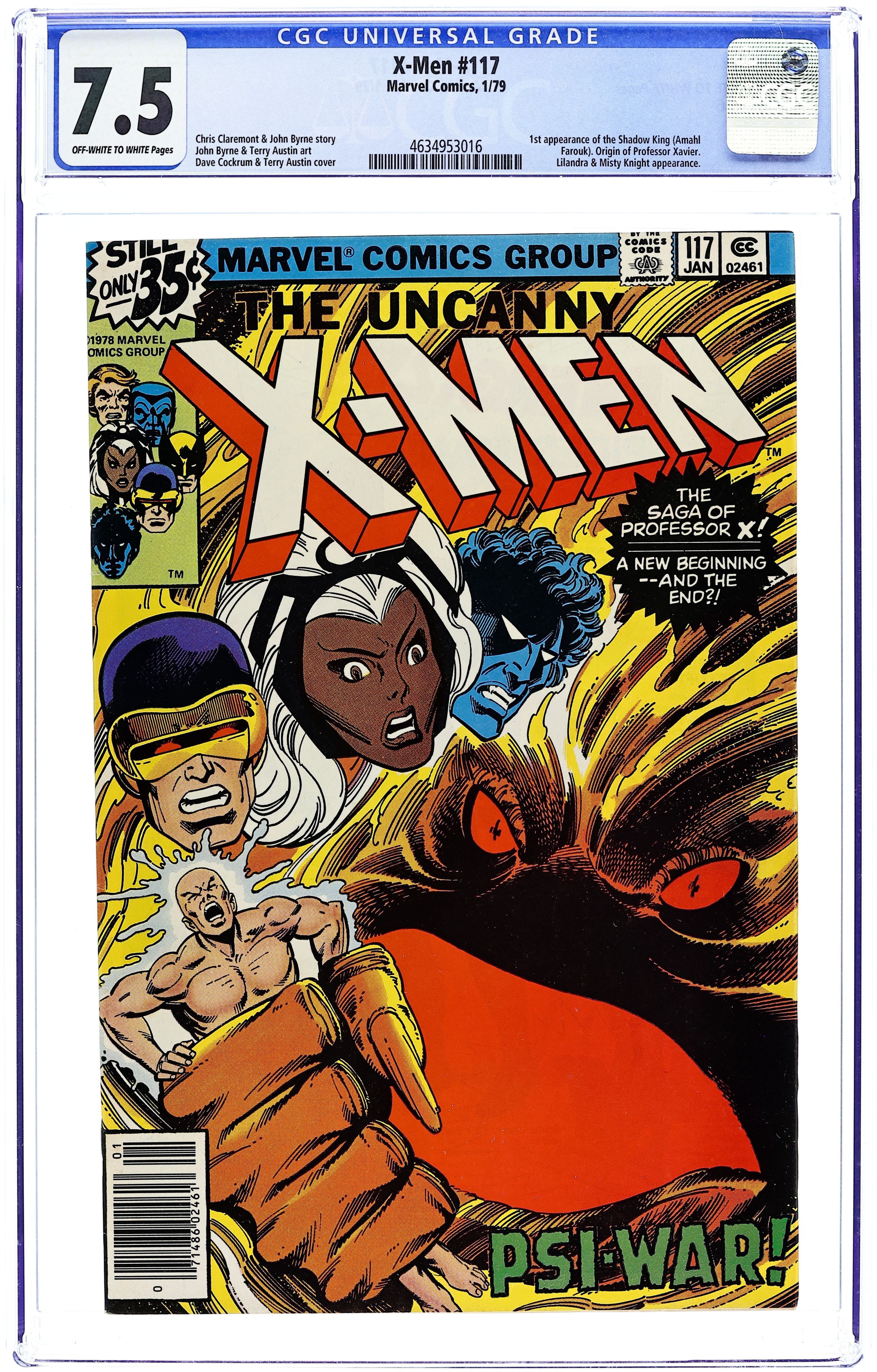Starts Apr 20 "Psi War!" Misty Knight cameo. Story by Chris Claremont and John Byrne. Art by John Byrne and Terry Austin. It's the origin of Professor Charles Xavier! In a time before the X-Men, Xavier ran into another mutant whose mental abilities rivaled his own. Witness the battle that decided the fate of mutant and mankind for generations to come. NOTE: 1st appearance of the Shadow King. 36 pgs. Cover price $0.35.