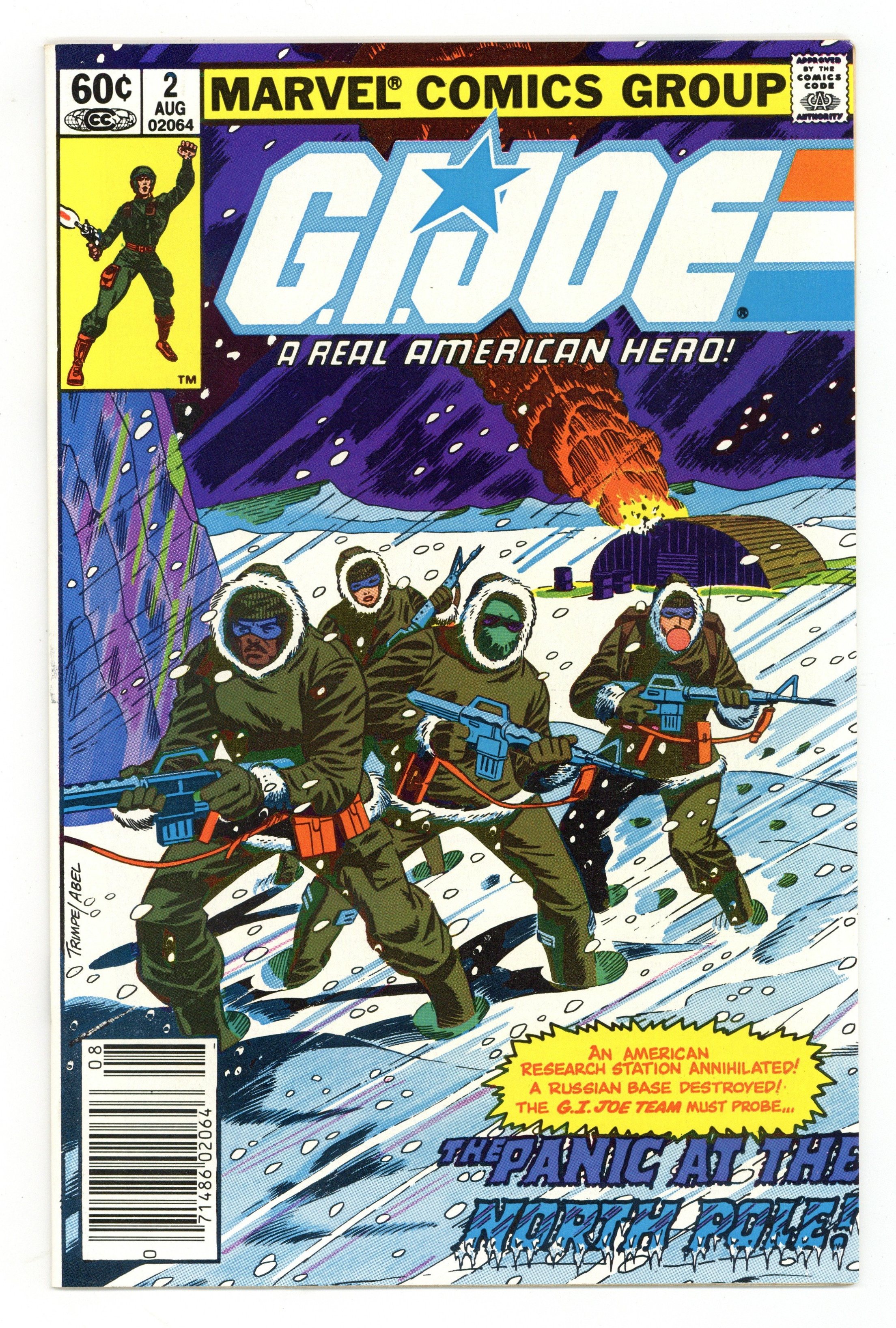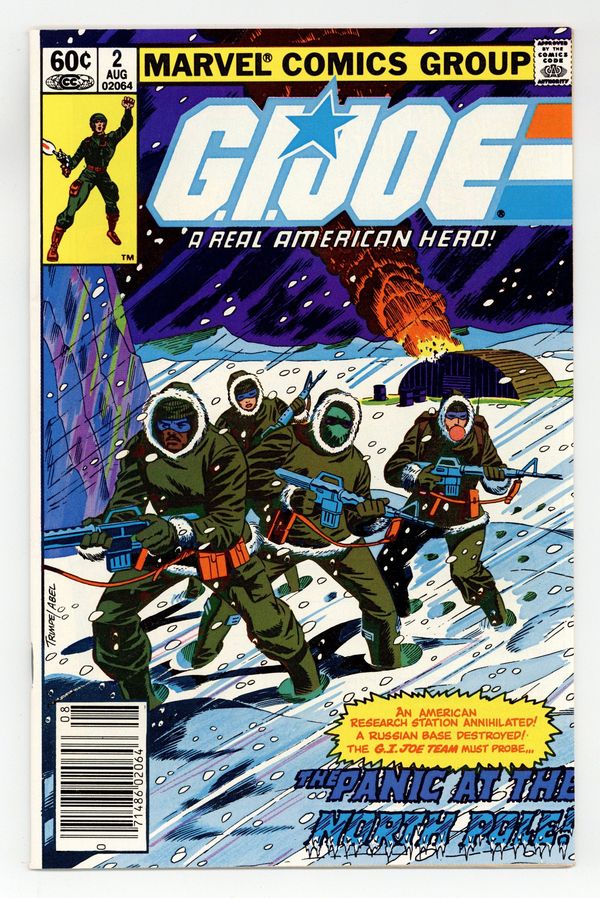 Starts Mar 2 First printing. Newsstand Edition. - "Panic at the North Pole!" Written by Larry Hama. Art by Don Perlin and Jack Abel. Cover by Herb Trimpe. Snake-eyes, Scarlett, Stalker, and Breaker are sent to the arctic to do some recon where they run into special agent Quinn and his Cobra-problem. 32 pages, FC.