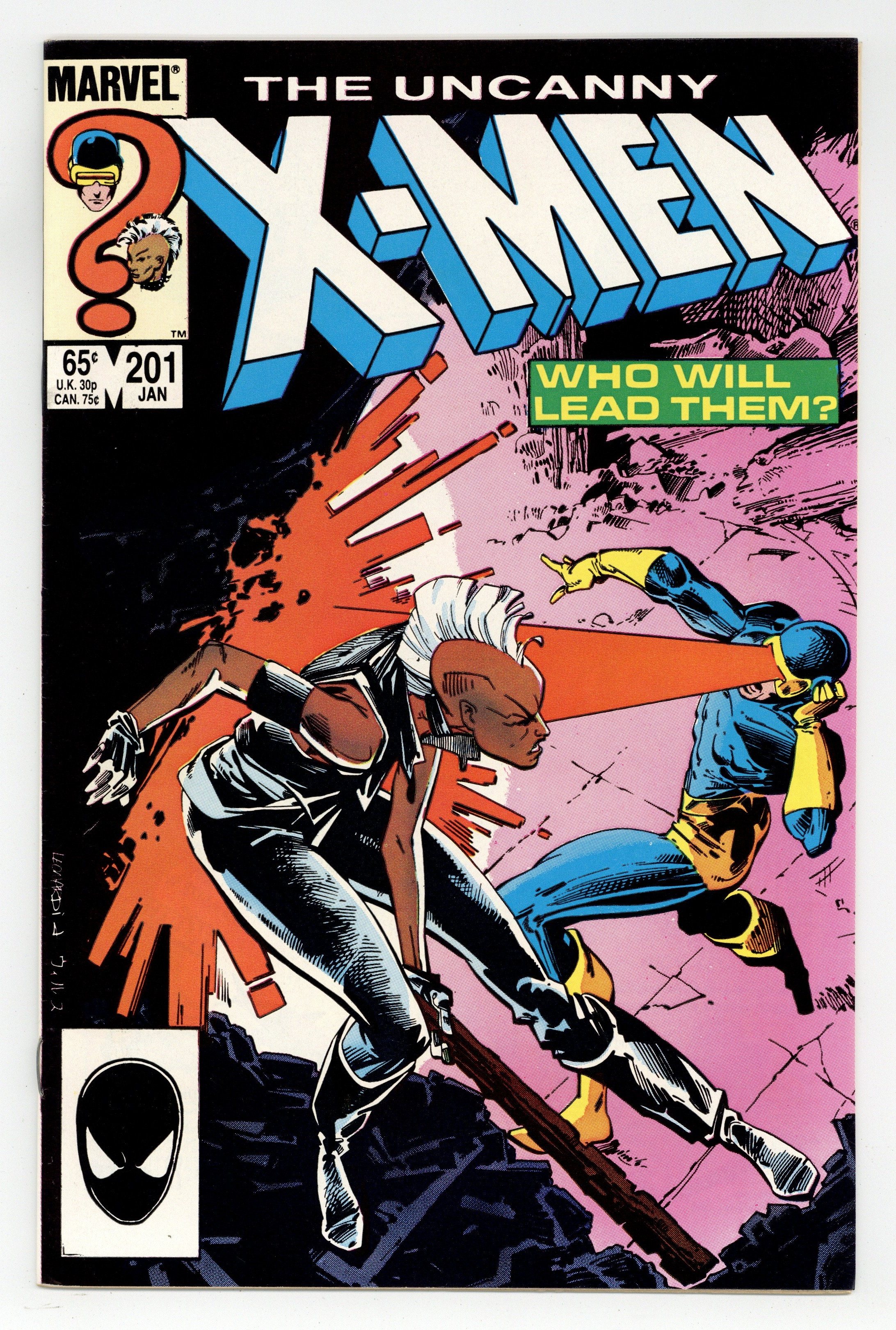 Starts Mar 23 Direct Edition. "Duel!" Guest-starring the New Mutants. Cameos by the Watcher, Binary, and the Starjammers. Story by Chris Claremont. Art by Rick Leonardi and Whilce Portacio. Professor Xavier is gone. Taken by his beloved Lilandra, the Shi'ar Majestrix, to the far side of the galaxy to save his life. Magneto, the X-Men's one time deadliest adversary, has been left in charge of rearing the New Mutants. Thus, begins a new era for the Children of the Atom. Now they just need to decide on a leader. Cyclops duels a powerless Storm in the Danger Room for the right to lead the X-Men. Plus, Scott and Madelyne's son is born. NOTE: 1st appearance of Nathan Summers, the baby that will grow up to become the mutant freedom fighter known as Cable. 36 pgs. Cover price $0.65.