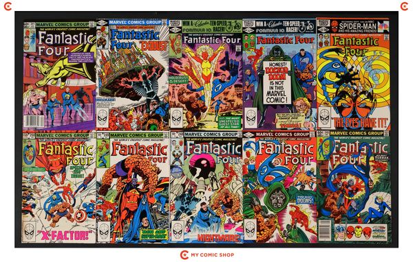 Issues 256, 260D, 261D, 263, 266, 271, 281-284 of Fantastic Four (1961 1st Series). Most will grade in the FN+ to VF range.